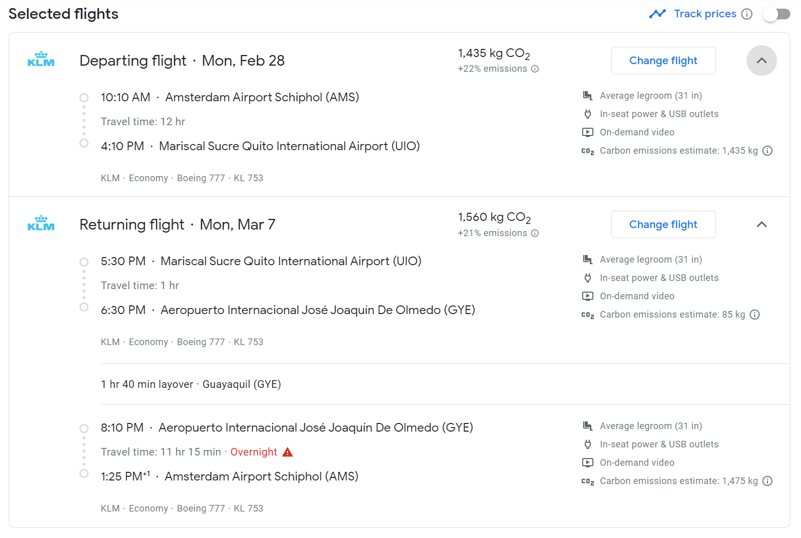 Another greatly confusing example is this. Depending on if you are flying to UIO or GYE that flight number will credit differently, both for the way down there and on the way back.