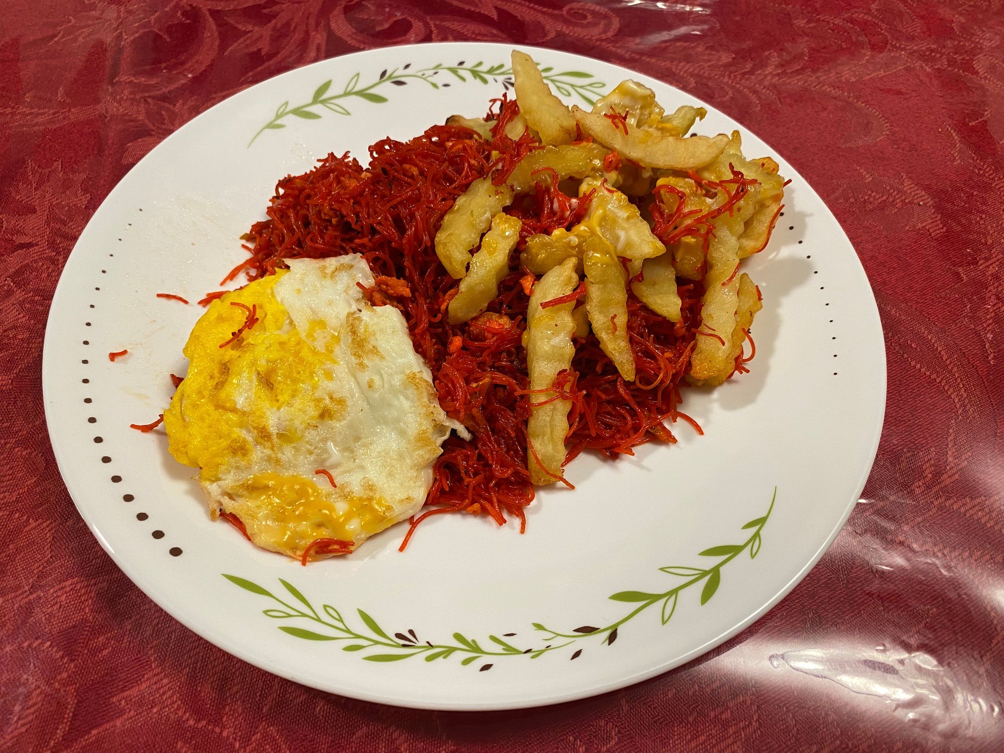 Mutton mee hoon goreng , came with fries slathered with cheese & mayo