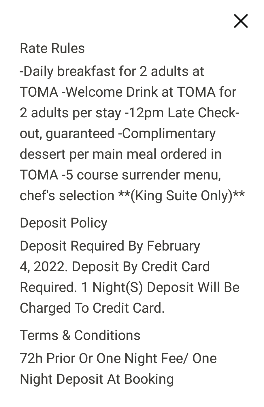 Second, separately, if you booked a standard room and used a TSU, would you expect to be entitled to whatever "king suite only" gets you?