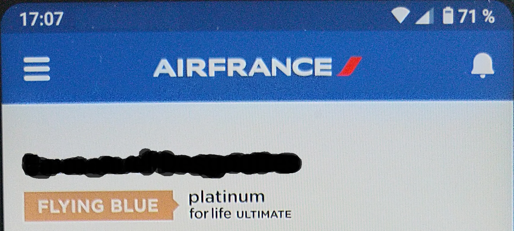 Yesterday there was an update of AF android app and I happily discovered on the welcome page that I had become" Platinum for life Ultimate" after only 3 years of platinum status