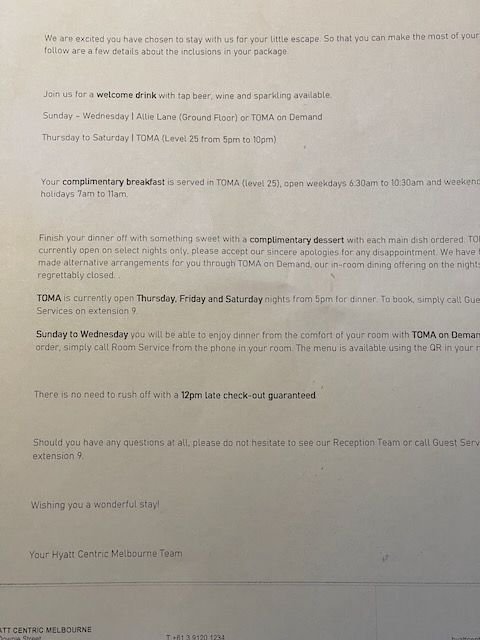 I was not told of any of the package benefits at check in but followed up the next day and was given the following information sheet: