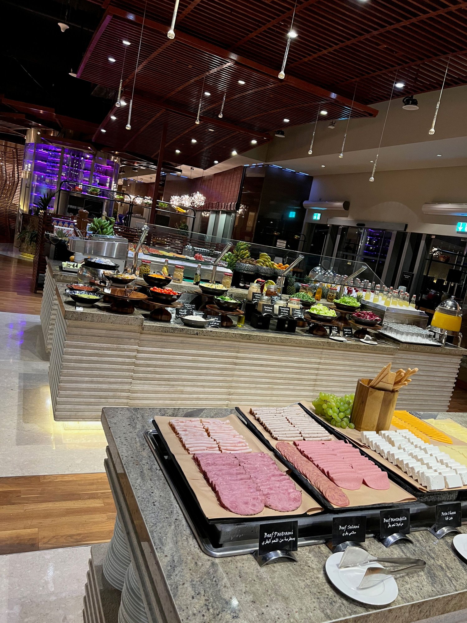 Pro tip: If you're entitled to free breakfast as the executive lounge or Ballaro, you are MISSING out if you only eat at the EC. The food at Ballaro is indescribable. The selection is amazing and my mind/taste buds are completely overwhelmed. They had an assortment of Emirati, Lebanese, Indian, and Asian selections. All sorts of breads (cheese, danish, croissant, sourdough, white/wheat, etc), 3 different types of eggs, including make your own omelettes, cheeses, cold cuts, chicken sausages (pork station is separate), soups/lentils, huge selection of fruits and fruit juices, yogurt, pancakes/waffles, falafel, dim sum (chicken buns and shrimp shui mai), etc. Made to order coffee, teas, etc. Pretty sure I'm missing something.