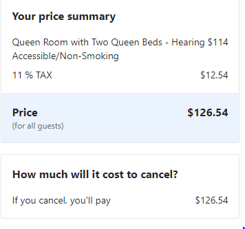 The taxes should have been about $30 on a $300 room rate. I was charged $70 via the AA hotels website. I was charged for the room at time of booking since the room was for the same night. I called and they can’t provide a breakdown of the charges.
