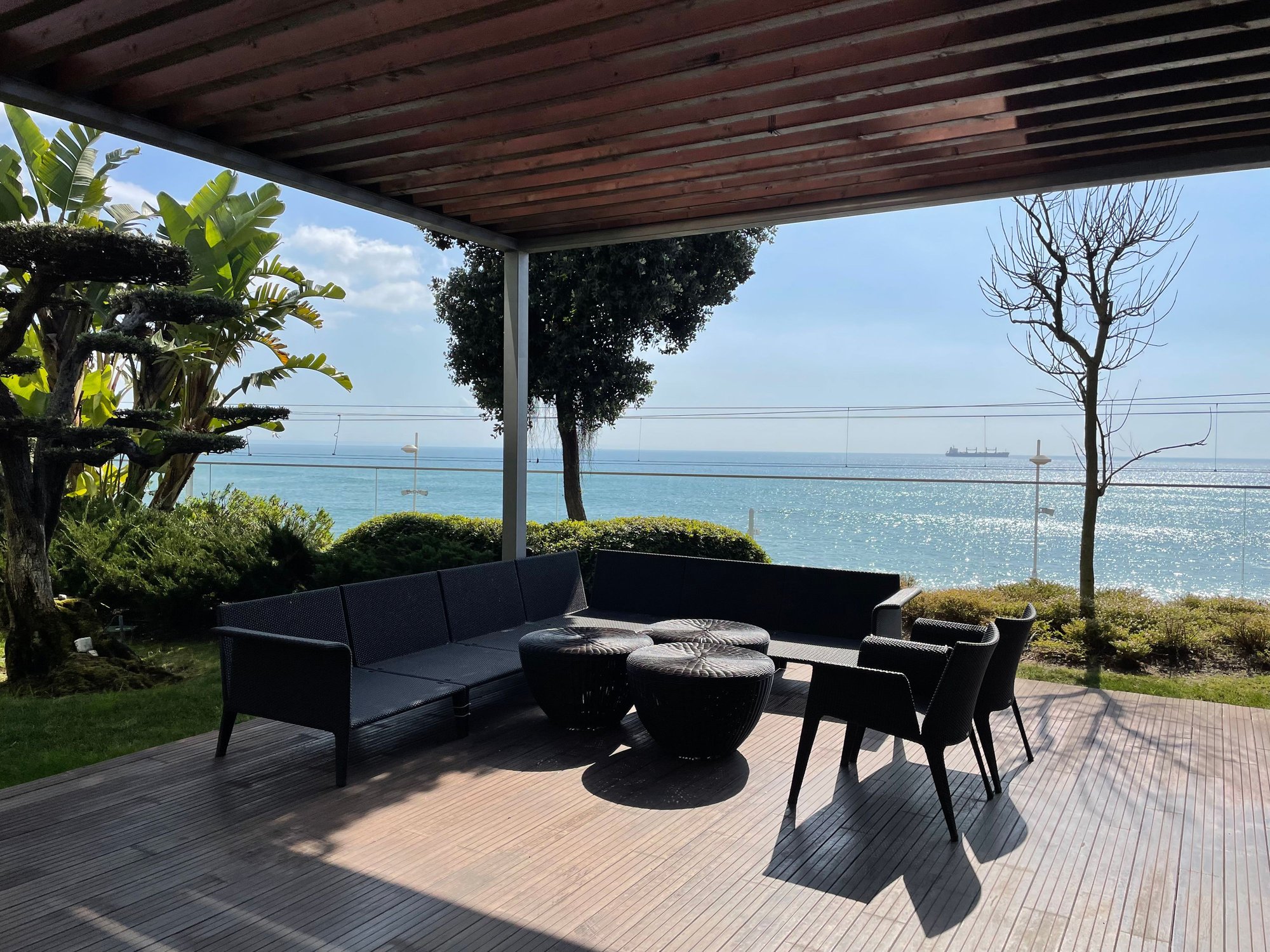 Very pleasant view over the garden/pool and sea view