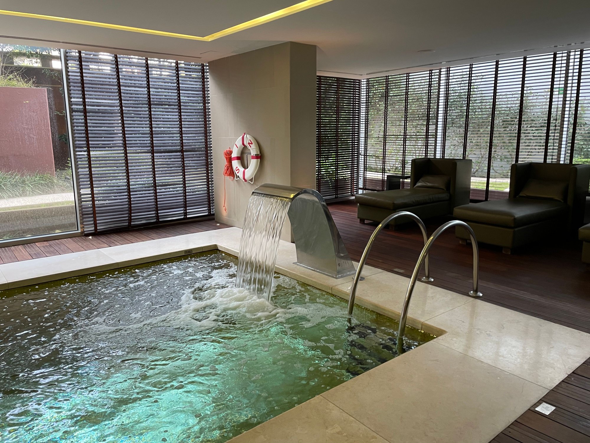 Very pleasant outdoor pool area (non heated pool). Spa and indoor pool are open under reservation because of Covid.