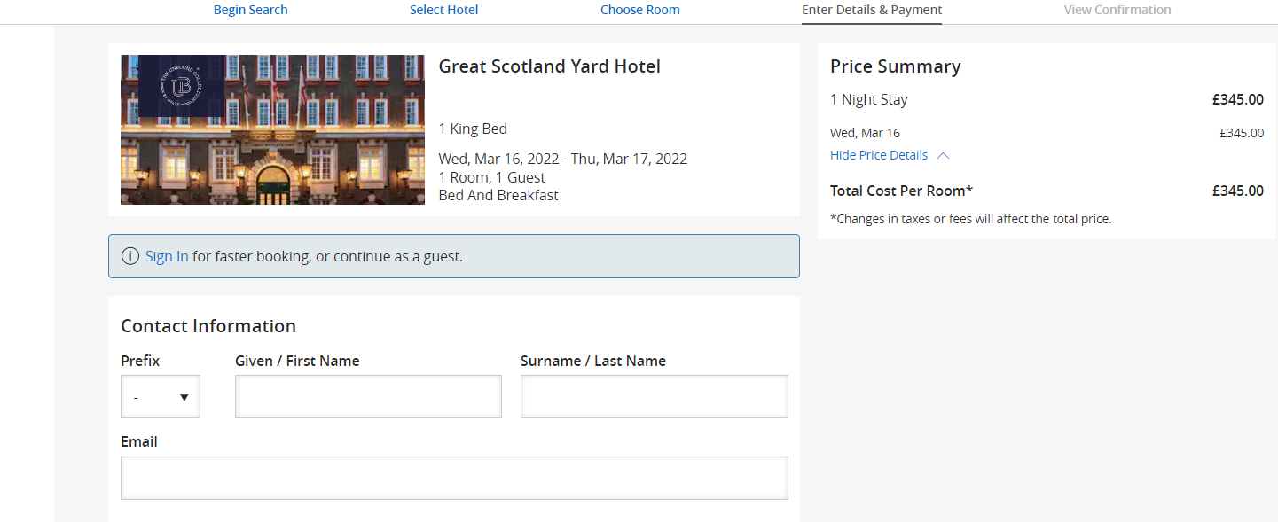 Here's what the booking engine looks like. The only place they list the fee is if you click on the 'read more' dropdown on the initial pricing page.