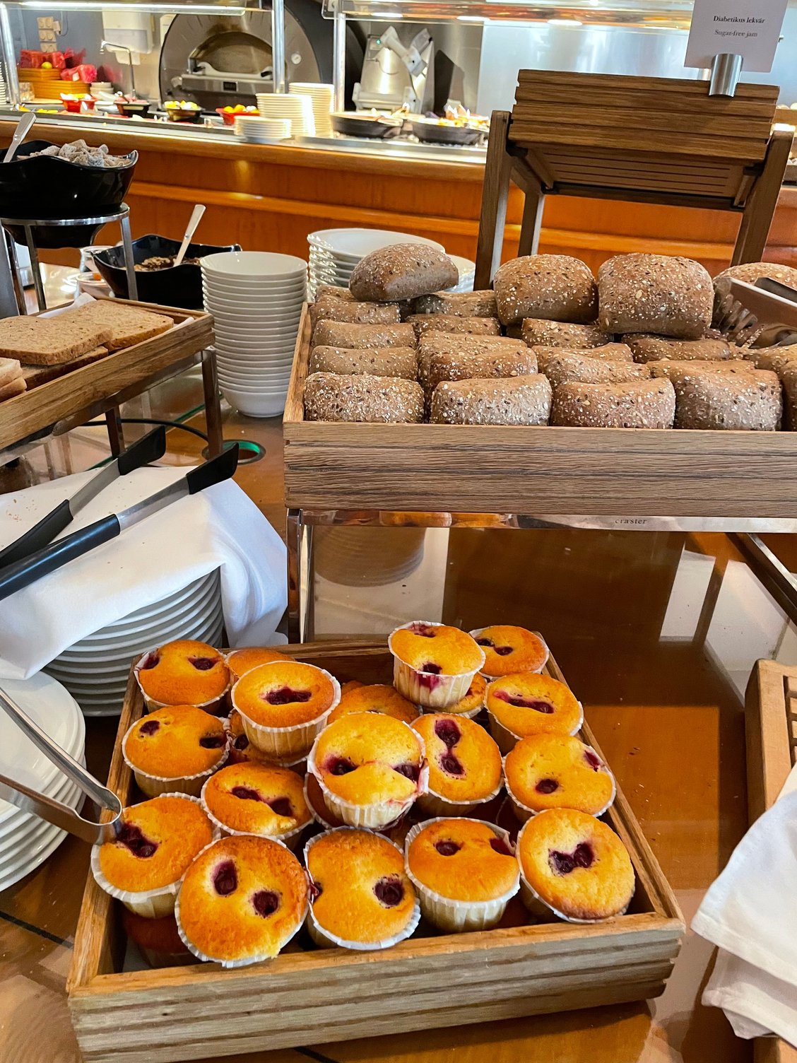 Mediocre breakfast served at main restaurant, which can be very crowded and noisy.