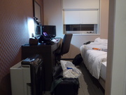 . I got a good deal on a one-night stay. The room was small. Here are three photographs of it.