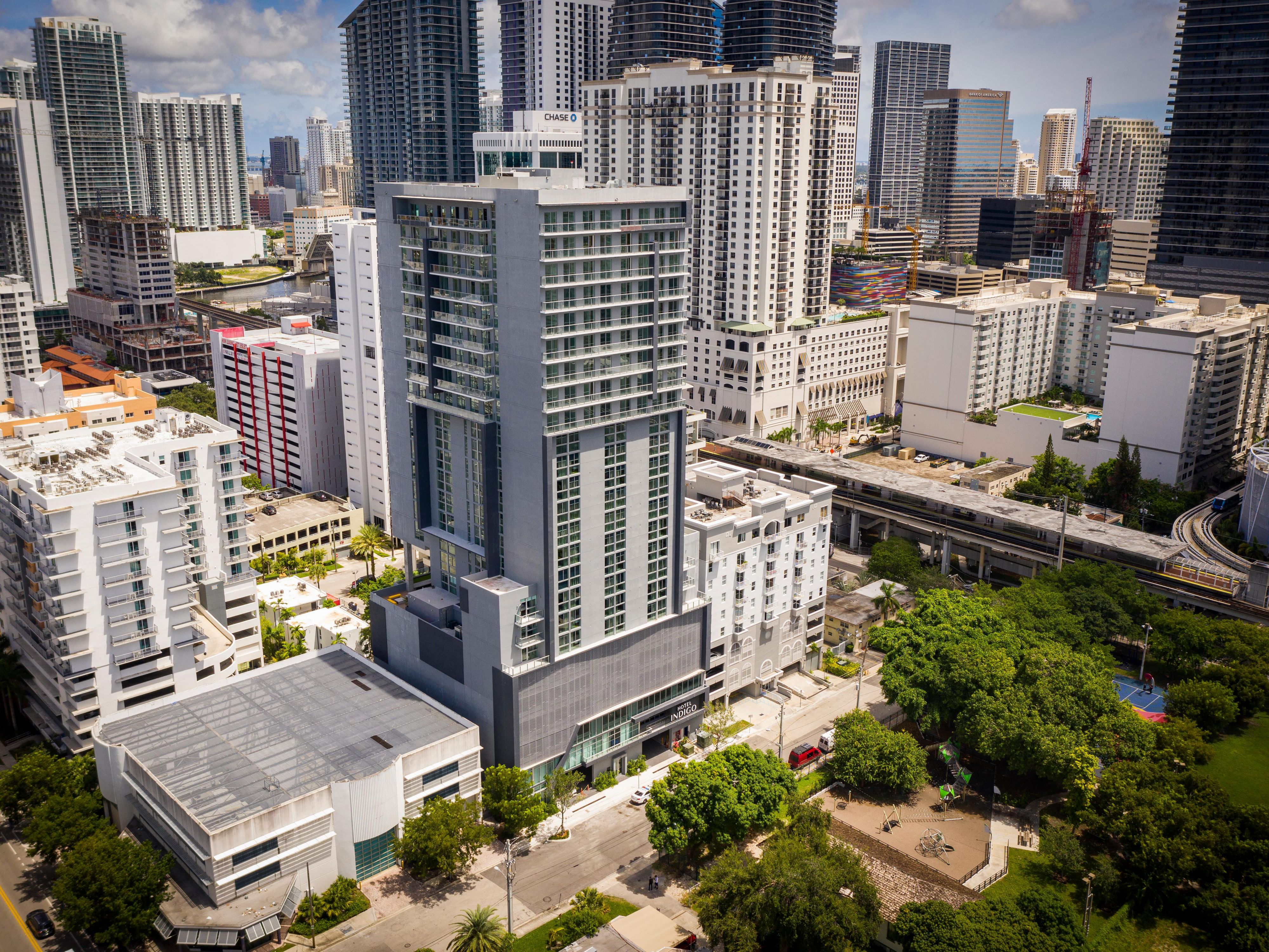 . The dual-branded hotel is in Miami’s bustling Brickell neighborhood and situated on the top floors of the building shared with the Hotel Indigo Miami Brickell, which opened in March 2021.