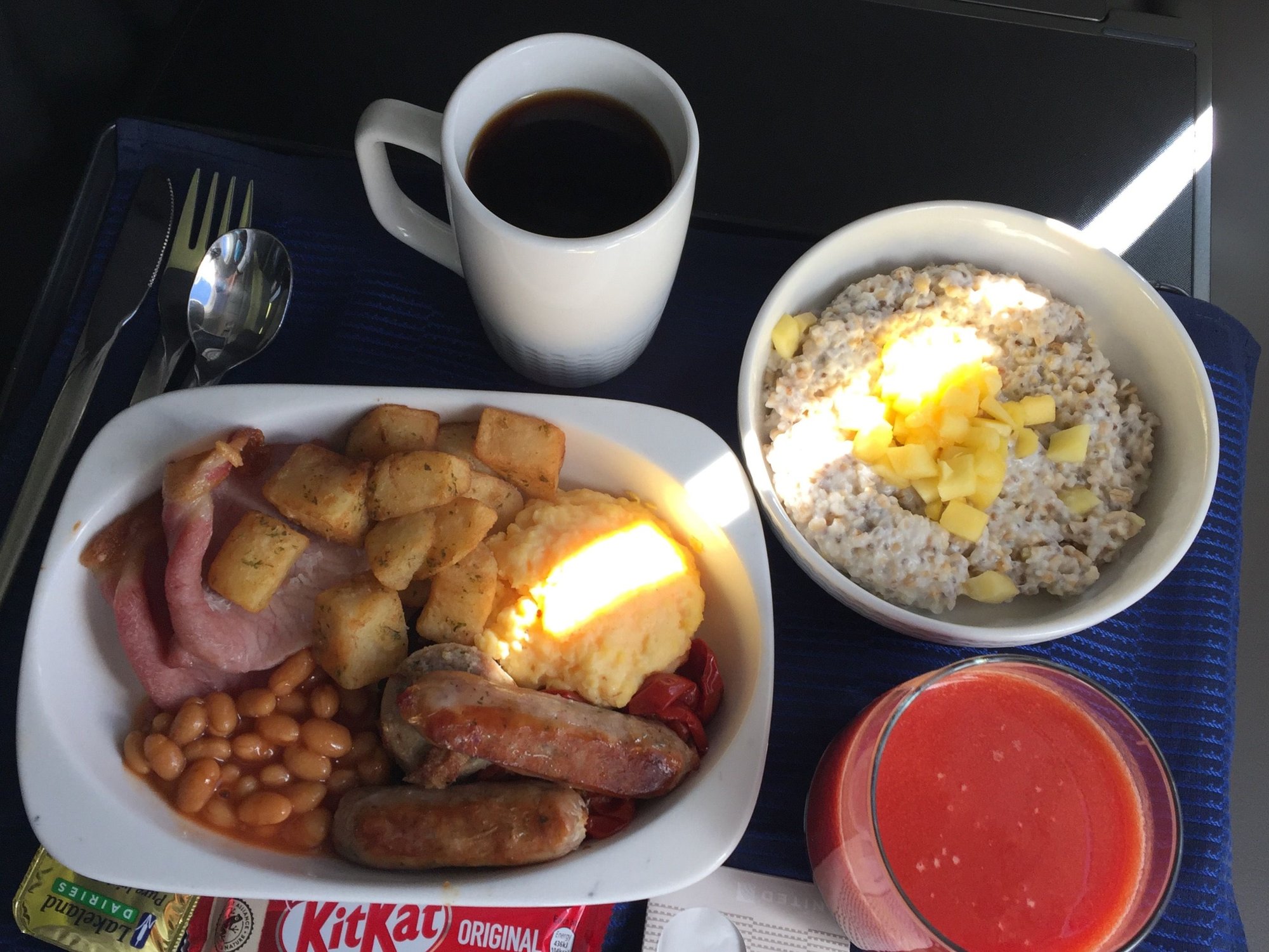 Looking back, I guess all-in-all I had four opportunities to eat the morning of the 7th: breakfast served on board the aircraft just prior to the diversion being announced, then again if I had taken one of the F&B vouchers being offered at SNN, the "elevenses" in the lounge..which I did indulge in, and then the full English breakfast (or brunch as the case may be) on the SNN-ZRH flight.