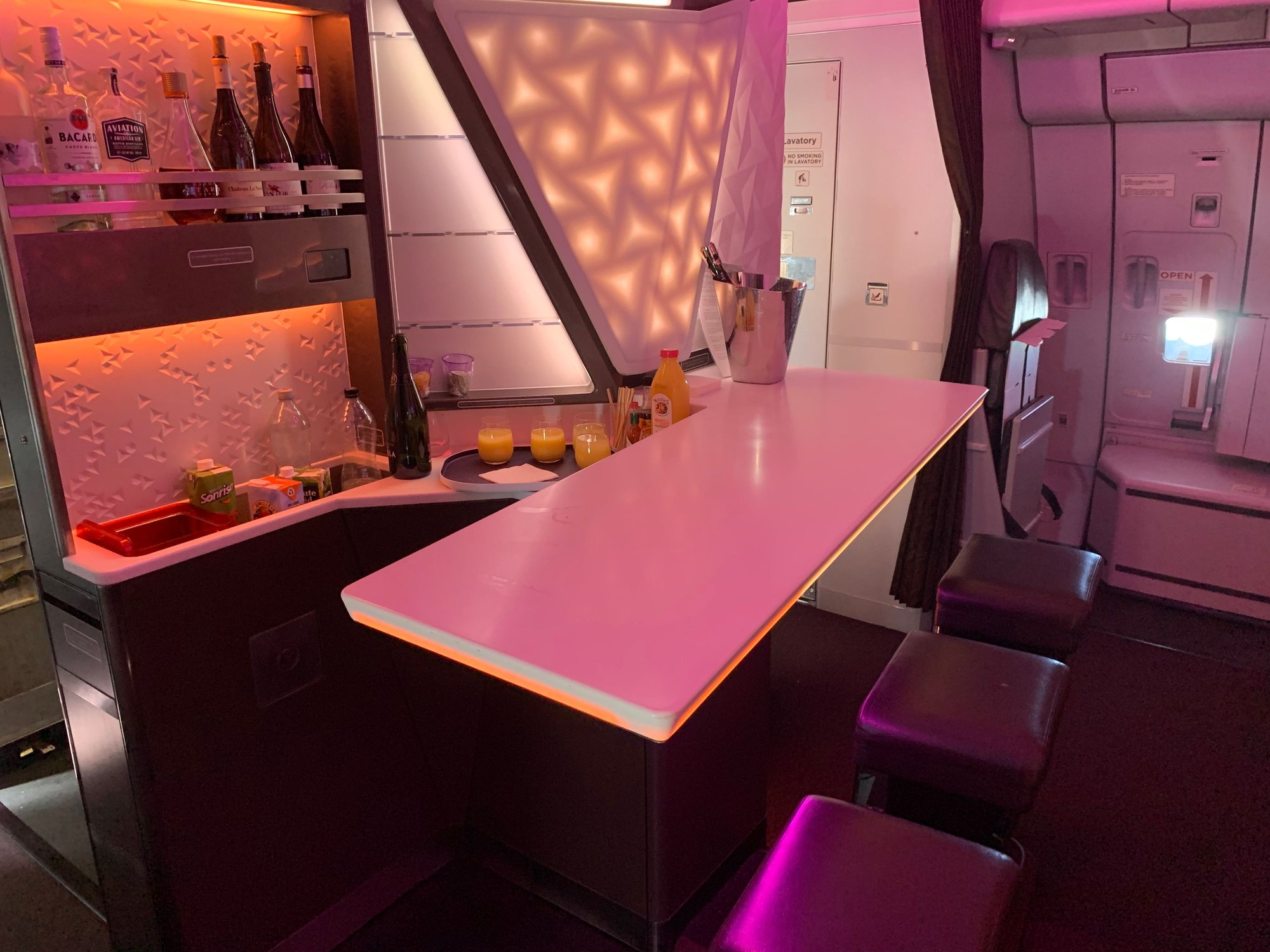 Lastly, here is the onboard lounge, and this was pre-COVID (Feb. 2020) - now there are just snacks, no drinks on display other than water, though of course the FAs will get you whatever you want. I've never seen anyone use it on half a dozen upperclass flights