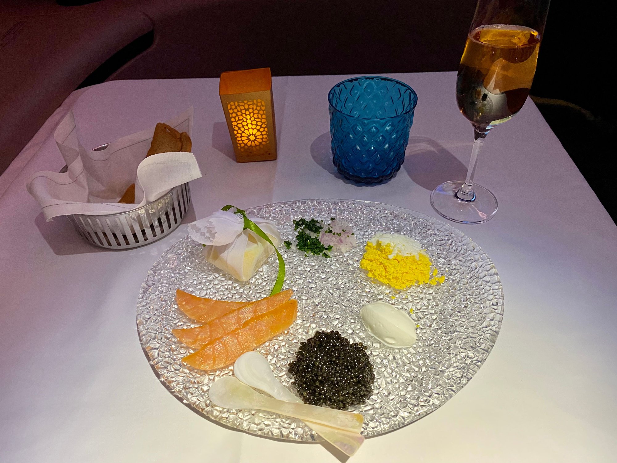 A decent portion of caviar and trimmings. Went down very nicely with the Brut Rosé.