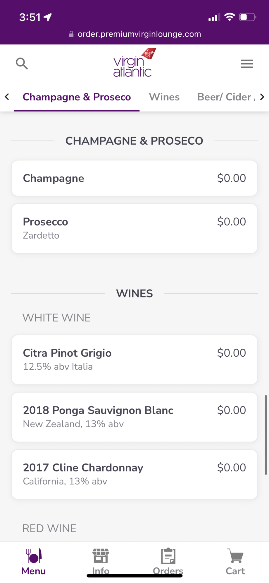 Adding some data points for those curious about the current state of the lounge. The lounge opens at 2:00 pm ET daily and is no longer accessible via Priority Pass. I purchased a Plaza Premium package earlier this year knowing I’d be able to use the VS lounges at IAD and EWR. This lounge is small, but food and drinks are included for free, and the menu is decent. I attached screenshots of the current menu since the one on the website is outdated. They had a full bar, although spirits were not included in the drinks you could order to your seat (I assume you could just go to the bar and ask for whatever you wanted). The champagne was decent.