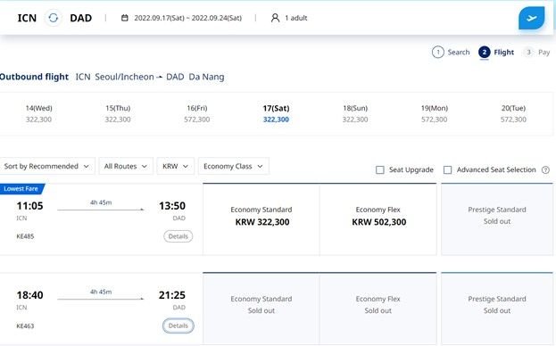 I am flying through ICN in September and looking at an evening flight ICN-DAD. This is what shows up: