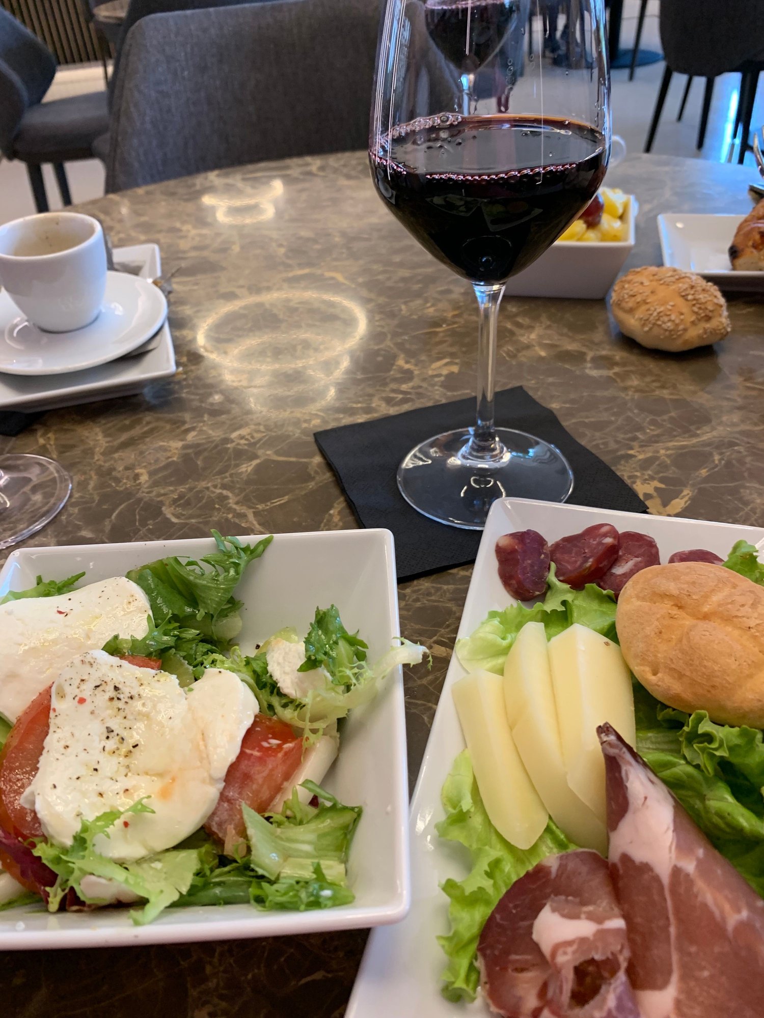 Drinks offer : they have a good selection of Italian wines (red/white), served in real glassware (and not in carton cups like in the infamous MXP lounge..).
