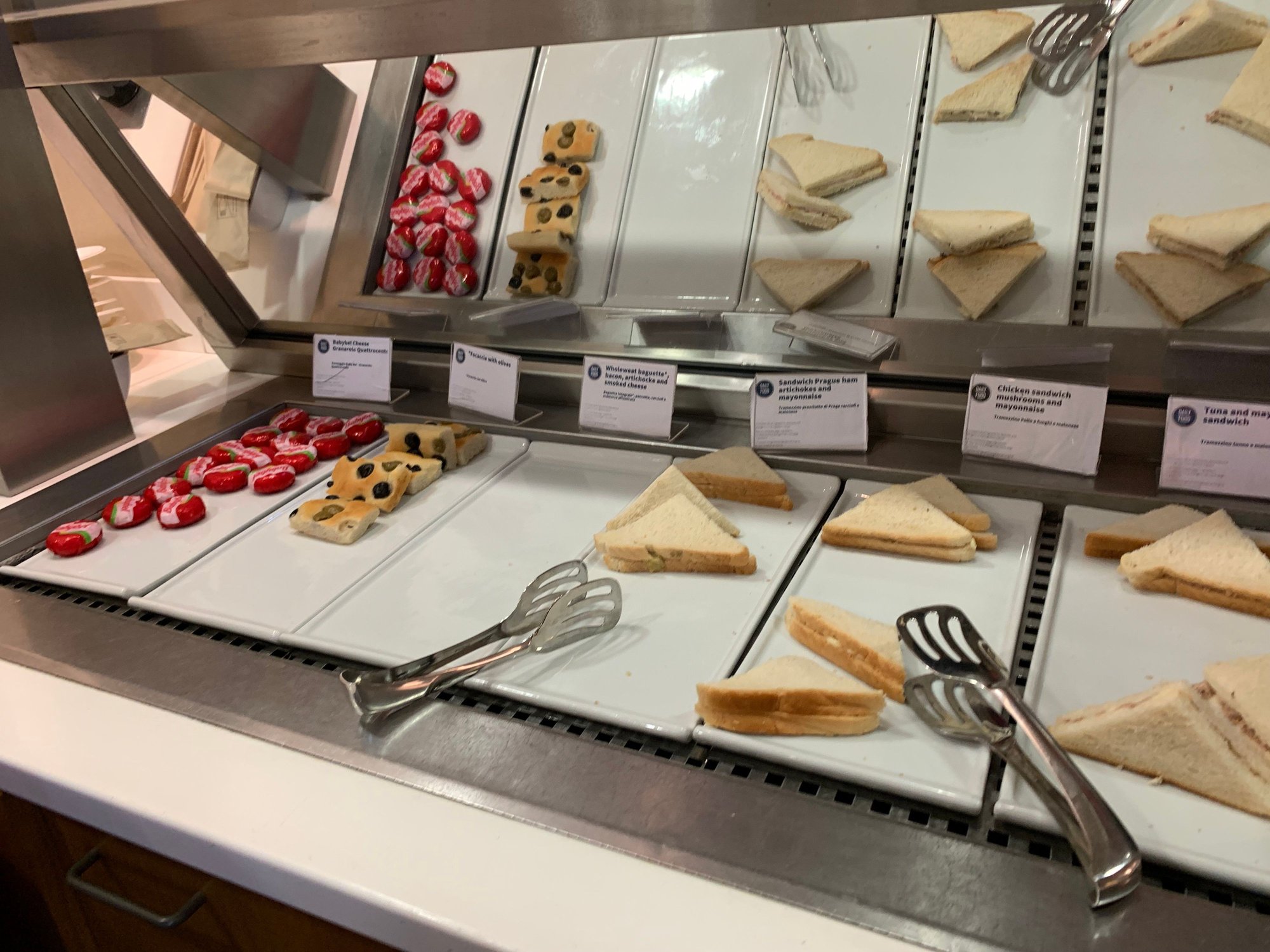 Food offer : very basic and poor : inedible sandwiches, babybel