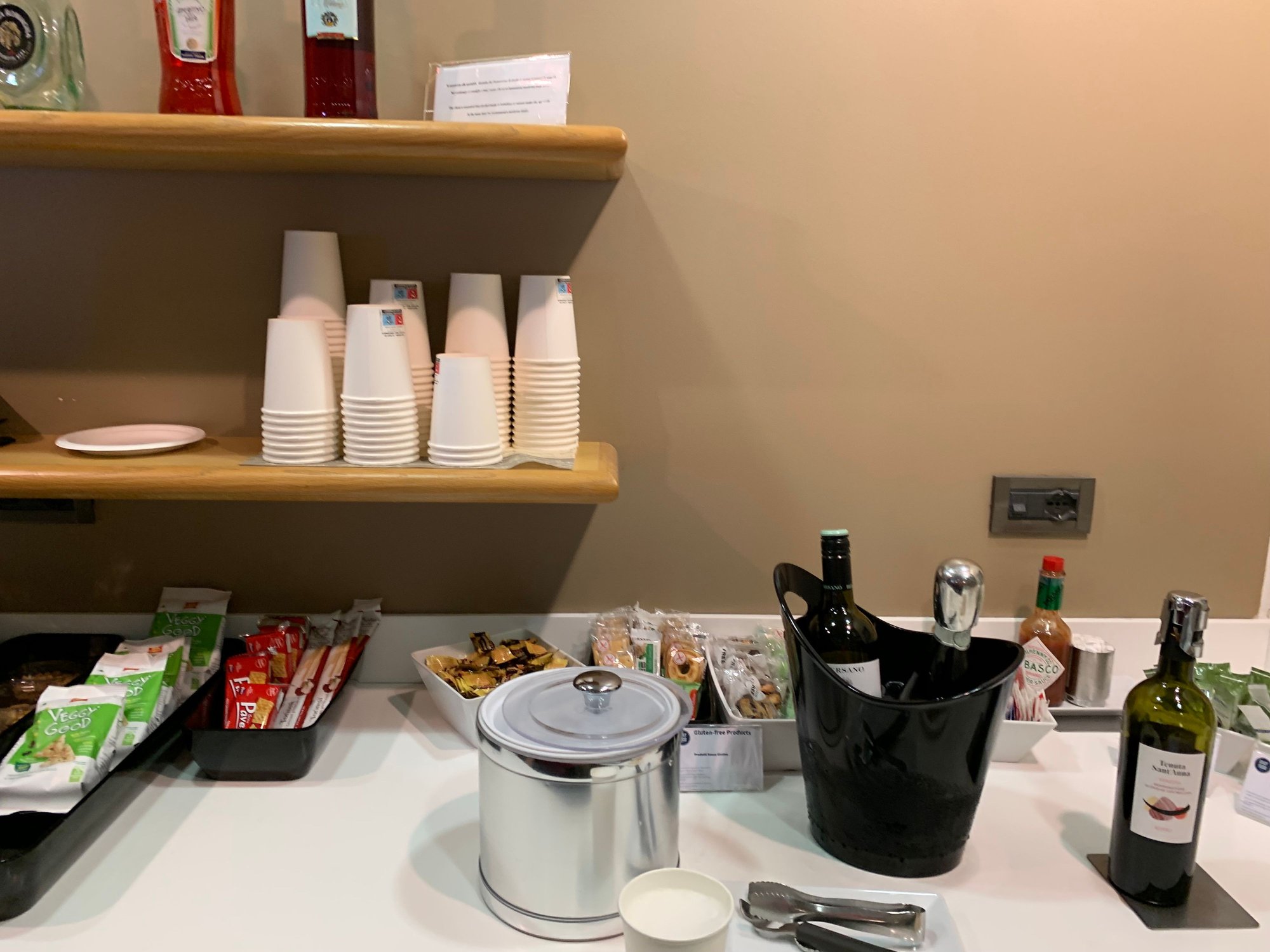 A very poor lounge, blind, crowded with a miserable offering and an insult to the Italian gastronomy. Not even glassware. Everything is eaten/drunk in plastic and carton cups