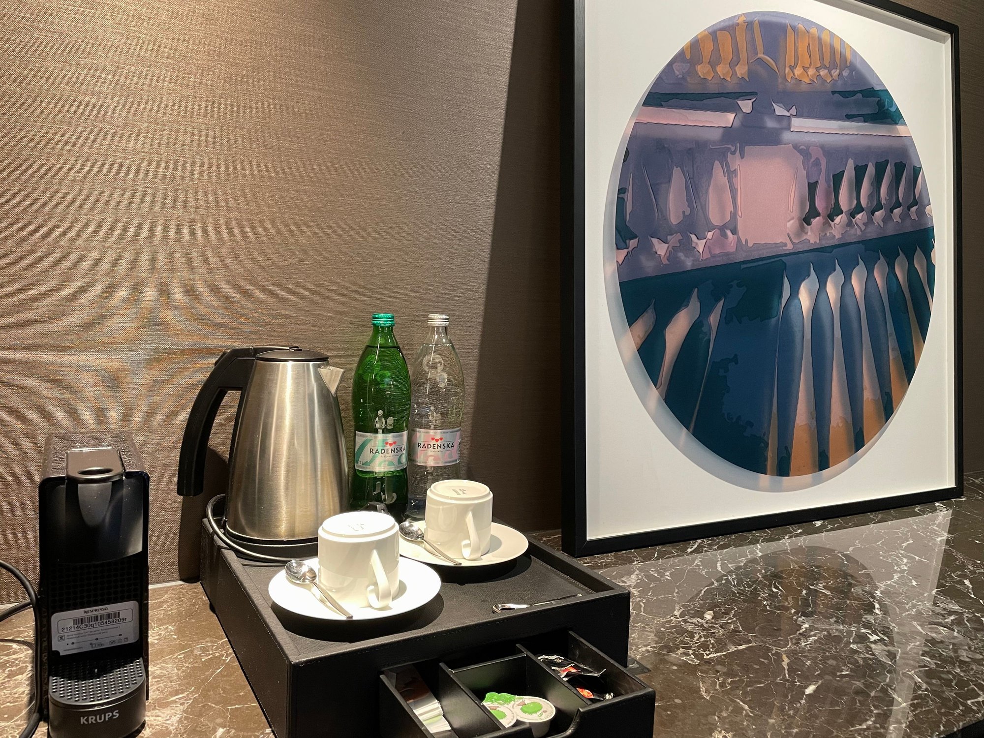 Nespresso coffee machine. Kettle