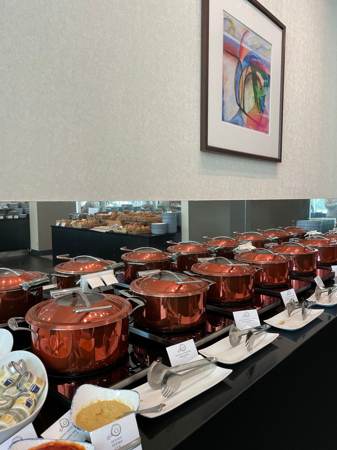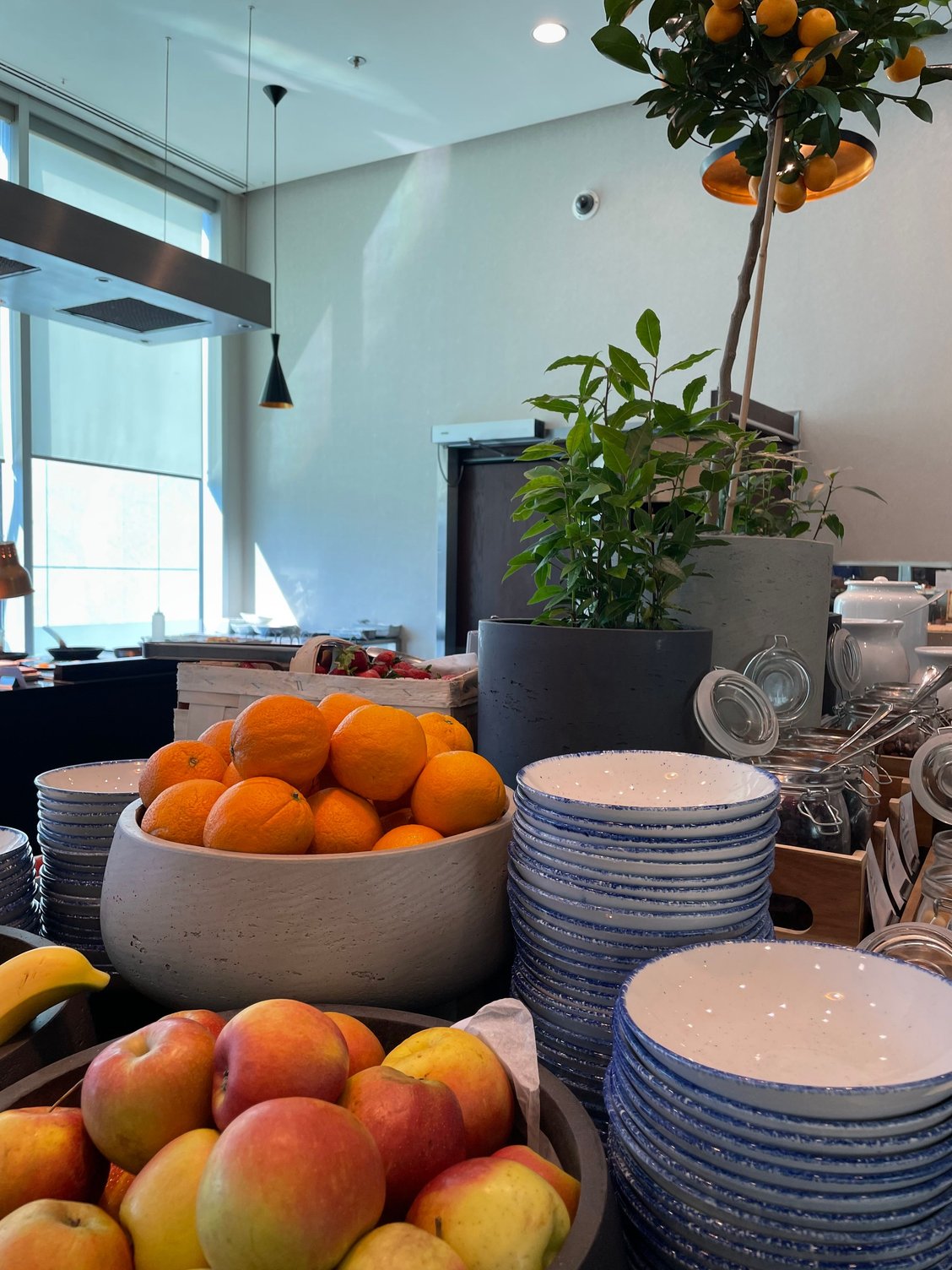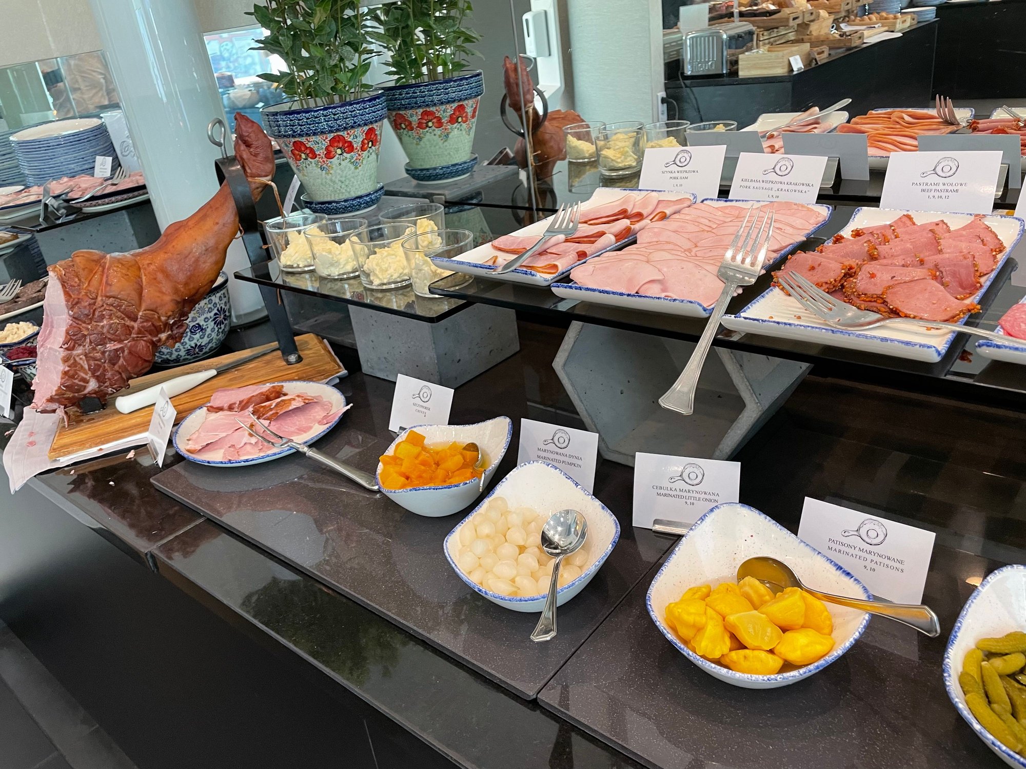 Excellent breakfast is served at restaurant with smiling and very efficient staff, despite numerous customers.