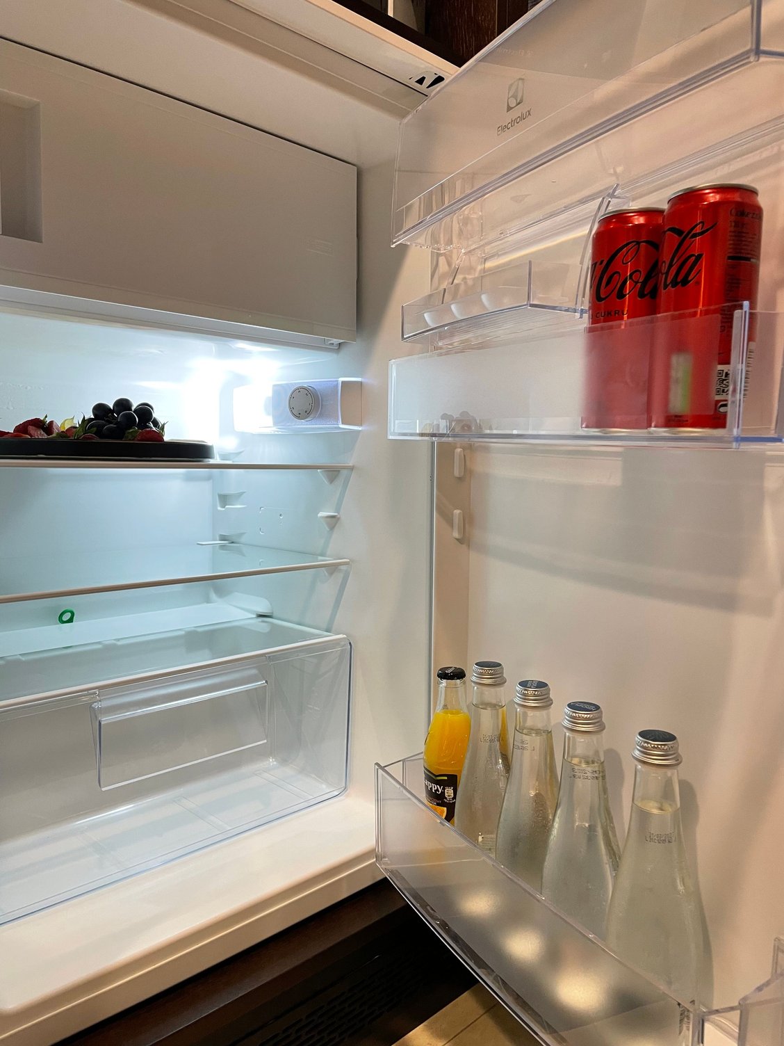 Unfilled minibar (but you can grab soft drinks from the club lounge).