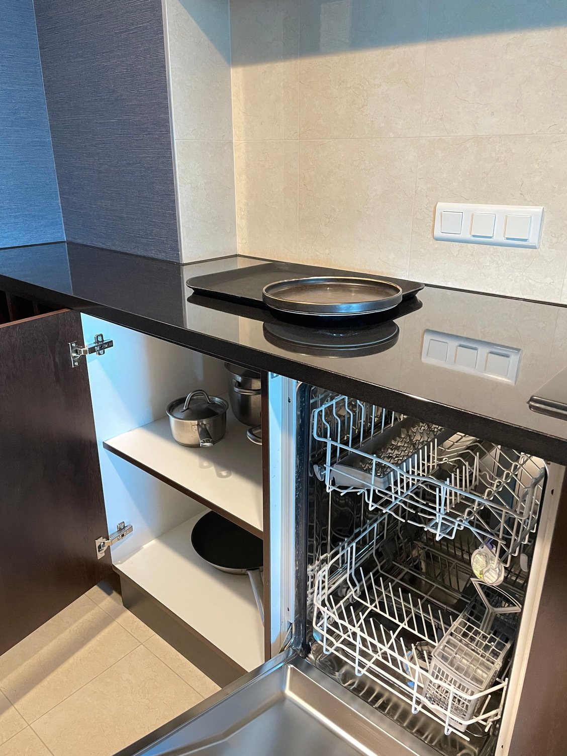 All equipped kitchen area (microwave, fridge, dishwasher, Nespresso coffee machine and kettle)