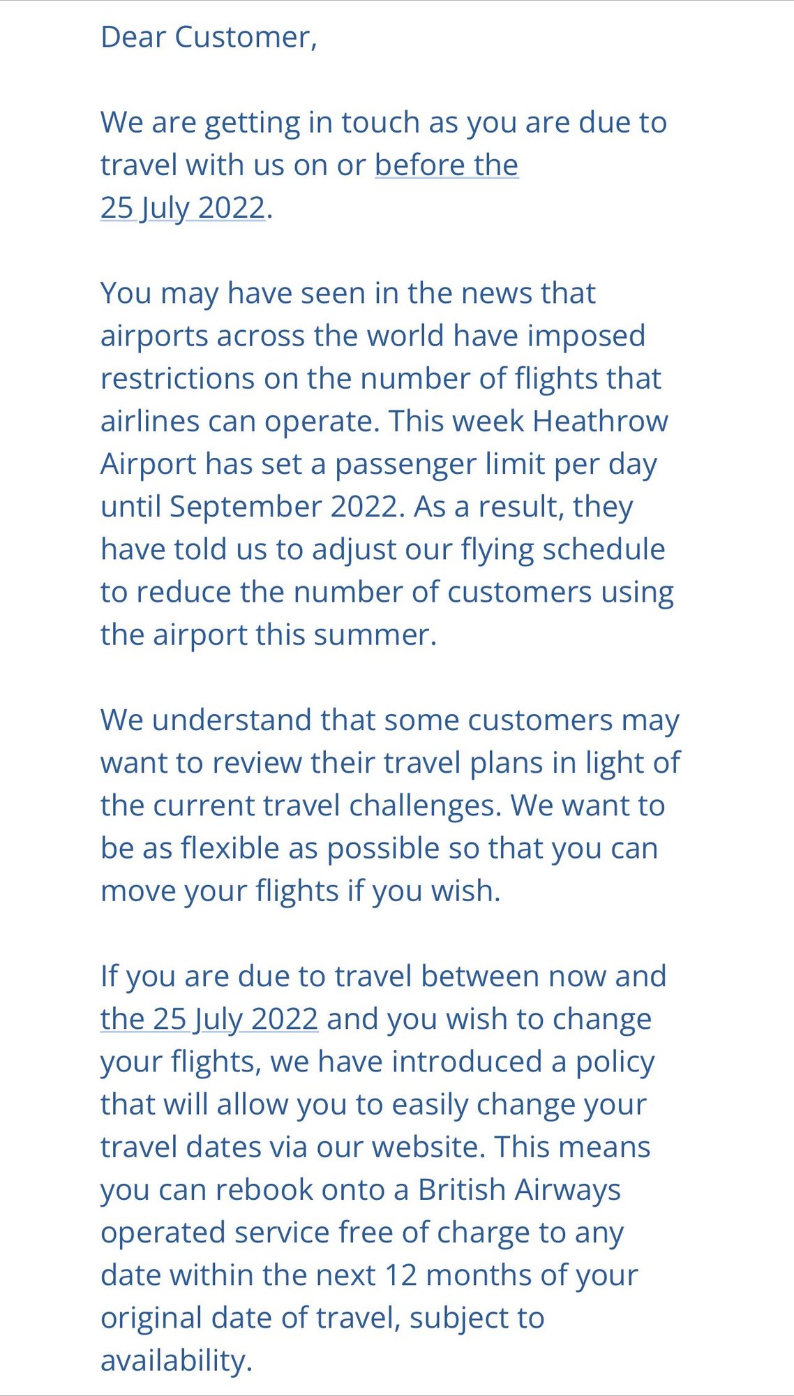 Just had an email from BA ahead of our flight next week from Washington Dulles to LHR. I'm assuming (hoping) it's not at risk as it's long haul, so interesting that they've sent everyone one of these. Just hoping to persuade anyone to move I suppose.