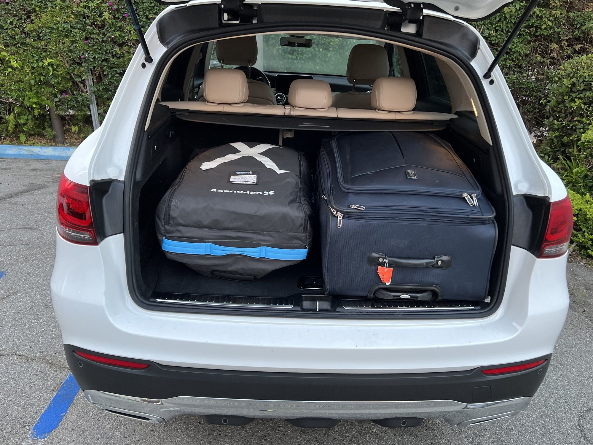 Keep in mind even most "mid-size" SUV's are rather tight on trunk space and the Uppababy is enormous. This is a recent Mercedes GLC300 rental I had with one large suitcase and 1 Uppababy stroller taking up the entire trunk.