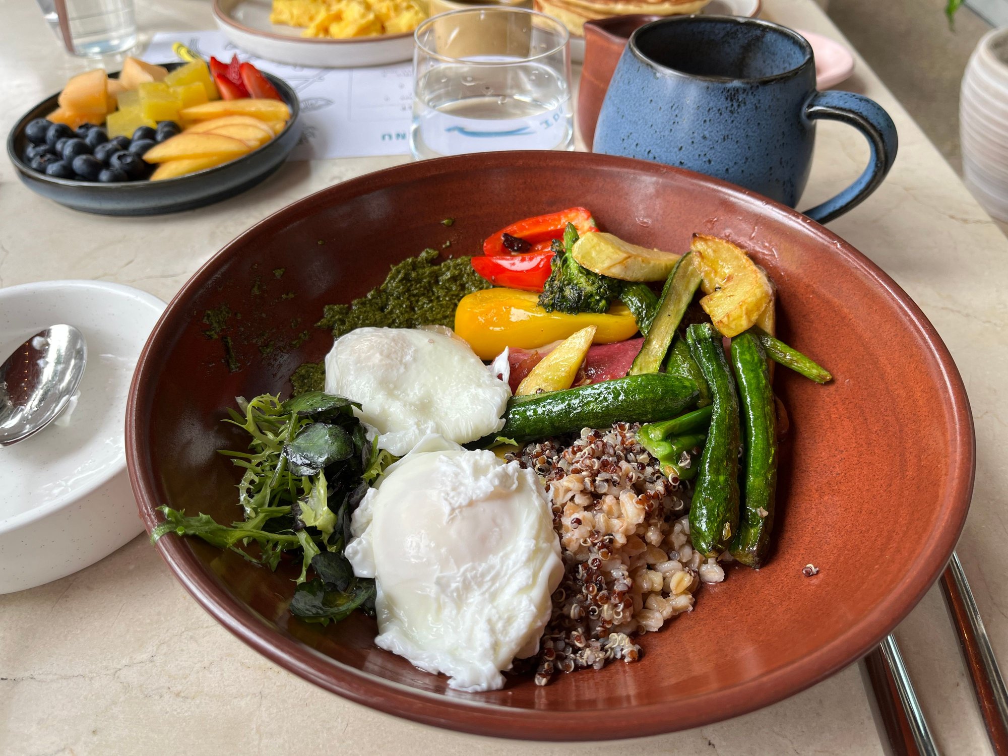 A la carte breakfast: grain and veggie bowl (I forget exactly what it was called but I’ve had it both of my stays and it’s very good). The side of fruit was also very good.