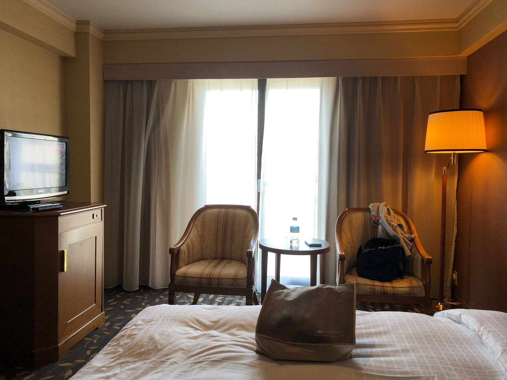 Our room was a standard room of 20 sq. meters. While not spacious, it did not feel especially cramped either. There was a refrigerator in the room, but it was not stocked with beverages, so we used it to chill the bottle of wine we had brought with us. The bathroom was small and plastic, but I’ve seen even smaller rooms at APA Hotels. The TV is also small but adequate considering the room size. Overall, it’s the kind of room you’ll find in many mid-sized hotel chains in Japan, in other words, it’s small, frumpy, drab, and tired looking but serviceable as a tourist hotel where guests are not expected to spend much time in their rooms except at night.