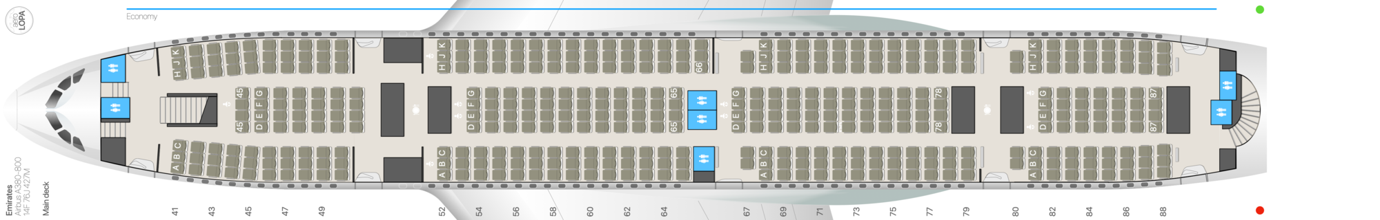 The A380 diagrams are now on the aeroLOPA website. Corrections have been made to the 38M and 4 class main deck plans, with two toilets added behind the rear Economy cabins