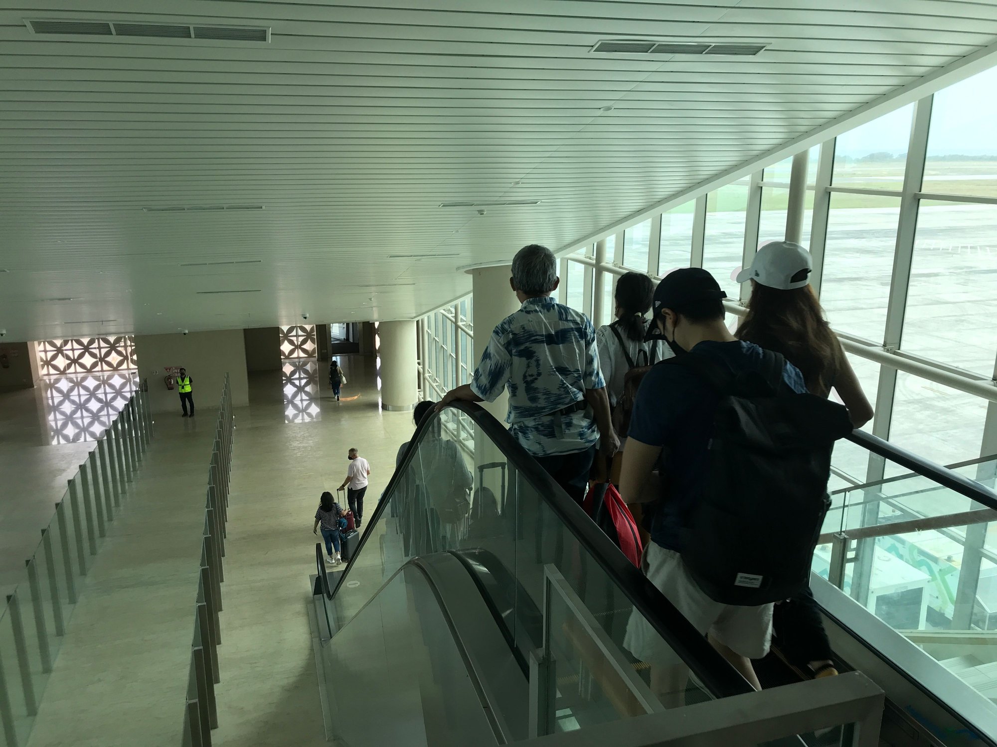 When time to board the aircraft, you'll go 1 level down by elevator or escalator
