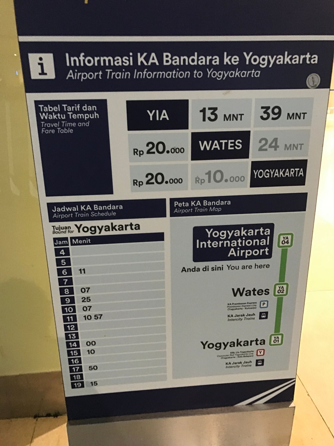 And this is the current (slightly irregular) train schedule from the Airport to Yogjakarta's main central trainstation "Tugu"
