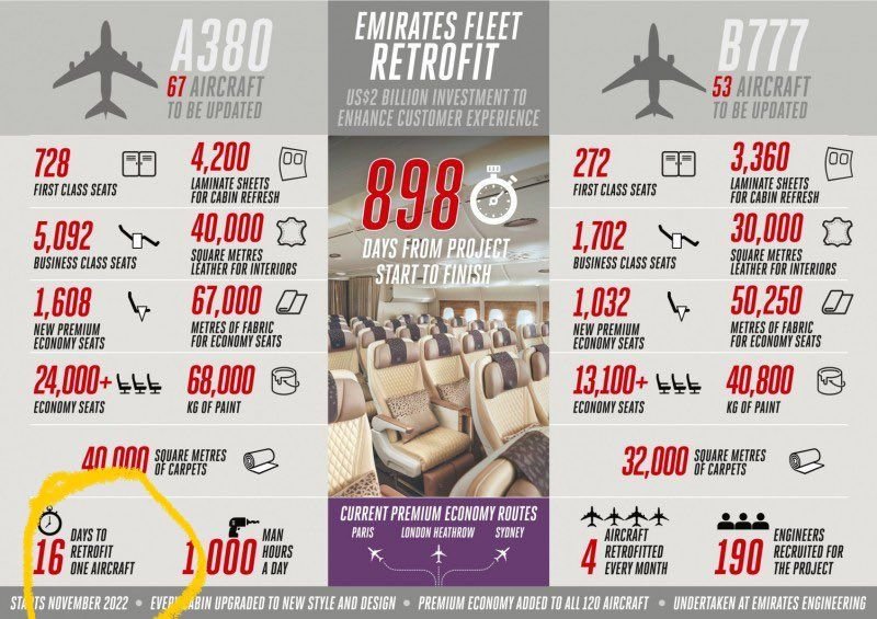 I find interesting to share the standard time advertised this week by Emirates : 16 days !!! (For an A380 !)