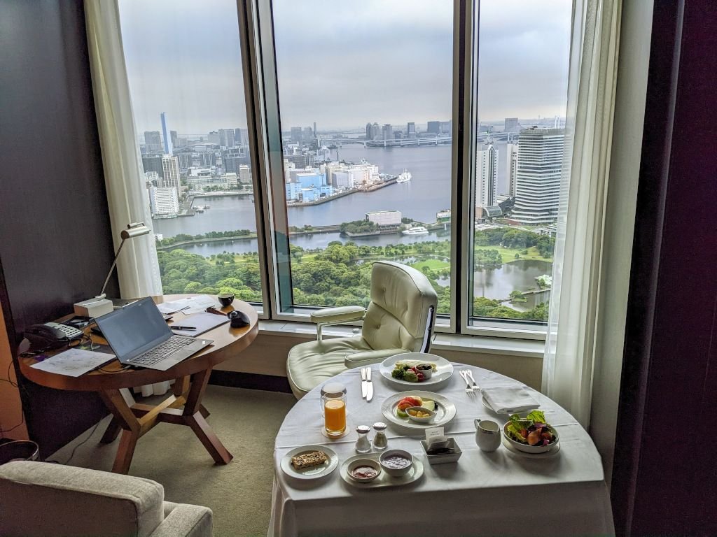 Stayed there for 3 days of workation. Upgrade to a suite was a nice surprise. Saw many signs of wear in the room but those were acceptable since my standard is low. Visit to the Hamarikyu right in front of the hotel was nice, and enjoyed uninterrupted jogging to/from Toyosu/Tsukishima area along the Sumida river (you need to start at a corner of Hamarikyu as there are a few traffic signs to cross before that). I am still COVID averse and also felt not fitting in those well-dressed fancy people (typical of high-end hotels in Japan), so ended up having all meals in the room, which was nice with the nice view of Hamarikyu, Rainbow bridge, aircraft landing in HND (miss old days of circling approach to 16L), and high-rise buildings. One thing I did not like is the long runway in front of the checkin/out counters which you have to take to enter/exit the hotel crossing many staffs' lines of sight. Overall, I really enjoyed the stay, and would definitely visit again unless price goes up significantly after tourists start flowing into Japan.