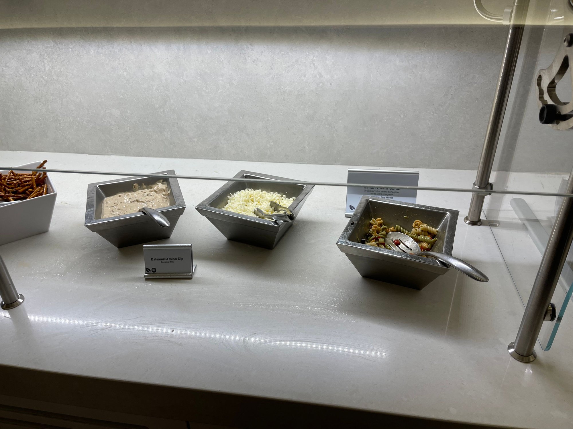 Club at SFO is open with plenty of food options. It appears to be operating normally. I am here now.