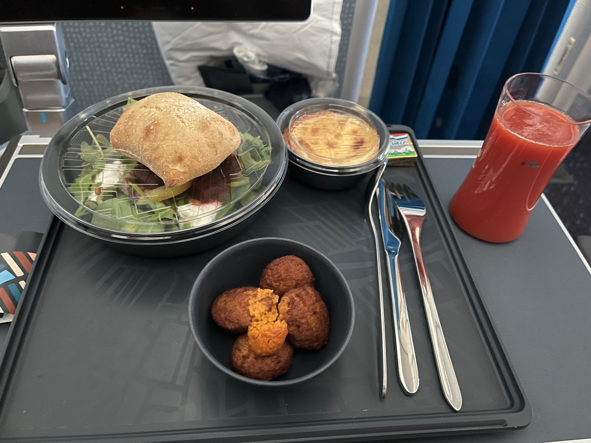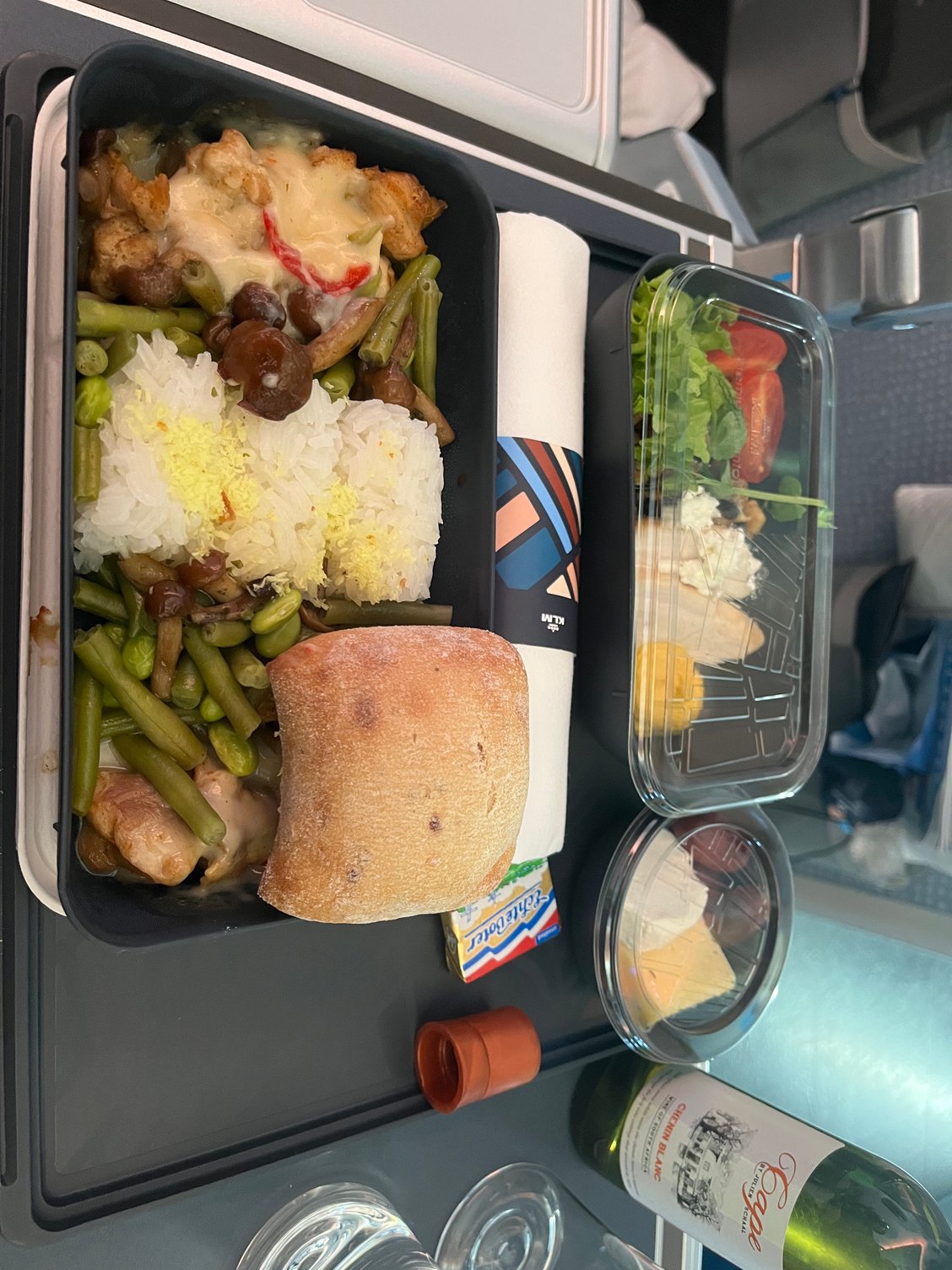 Seat is definitely wider/bigger than regular economy. Almost comparable to a First seat on a US domestic flight. It wasn’t too kind on my back but that may have been an issue on my side. Amenity kit is very basic - dental set and an eye mask. The food is much better compared to economy though. Both in quality and quantity, and also the fact that drinks are served in proper glassware, and come with real metal cutlery.