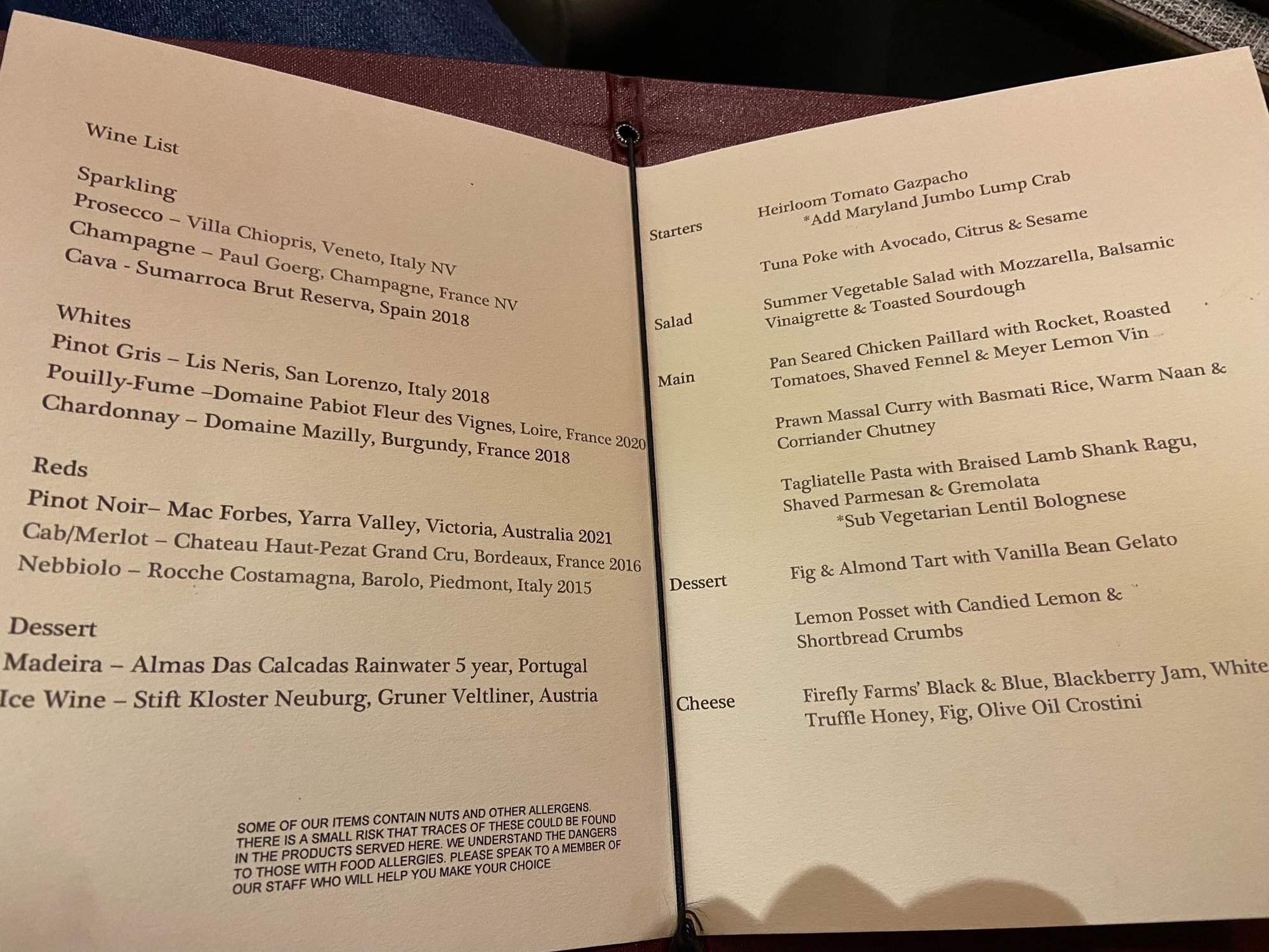 Very nice food and ambience this evening in First Dining at IAD. I forgot to take a picture of my main course.