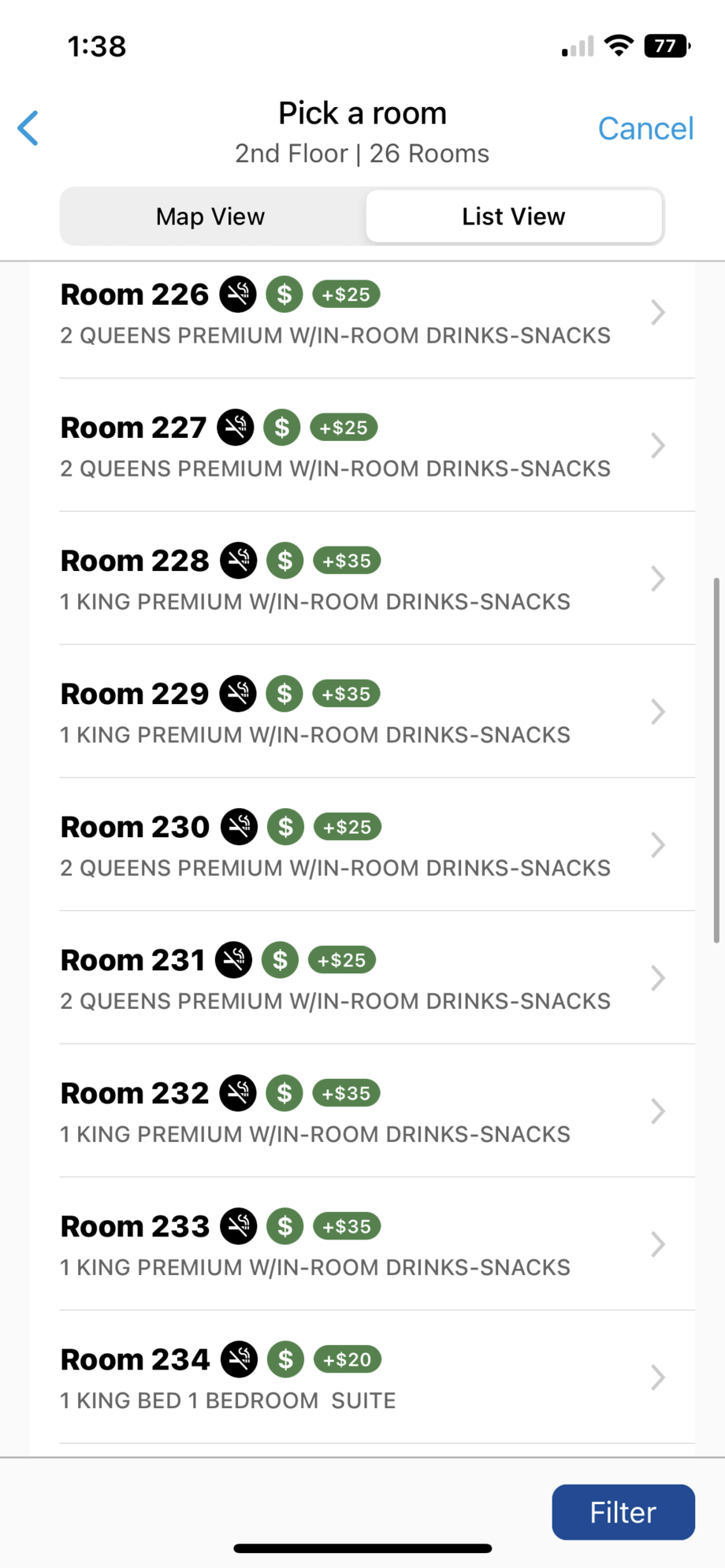 Counting the total rooms available, there are 70+ unoccupied rooms. Rather than upgrade a repeat customer, the only options are to buy up.