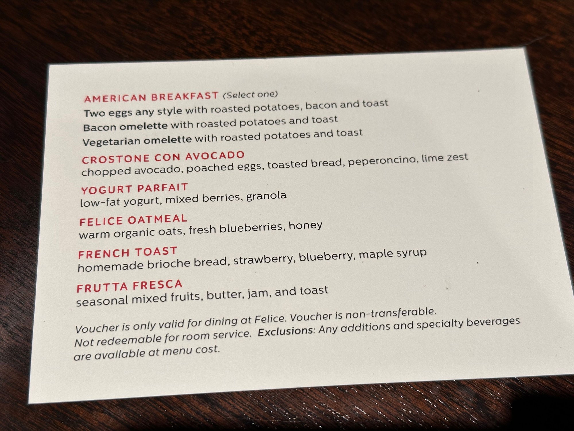 The toast was incredible...our group mostly stuck with the American Breakfast, or the Crostino with avocado and poached egg...delicious!