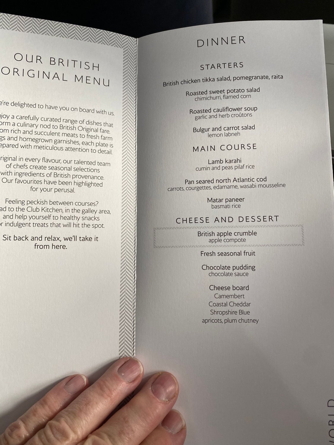 Great service by the crew, front mini cabin, 3 drinks by dinner although the cod ran out but given my wife’s response having had the last one, Chicken Karai was the better option