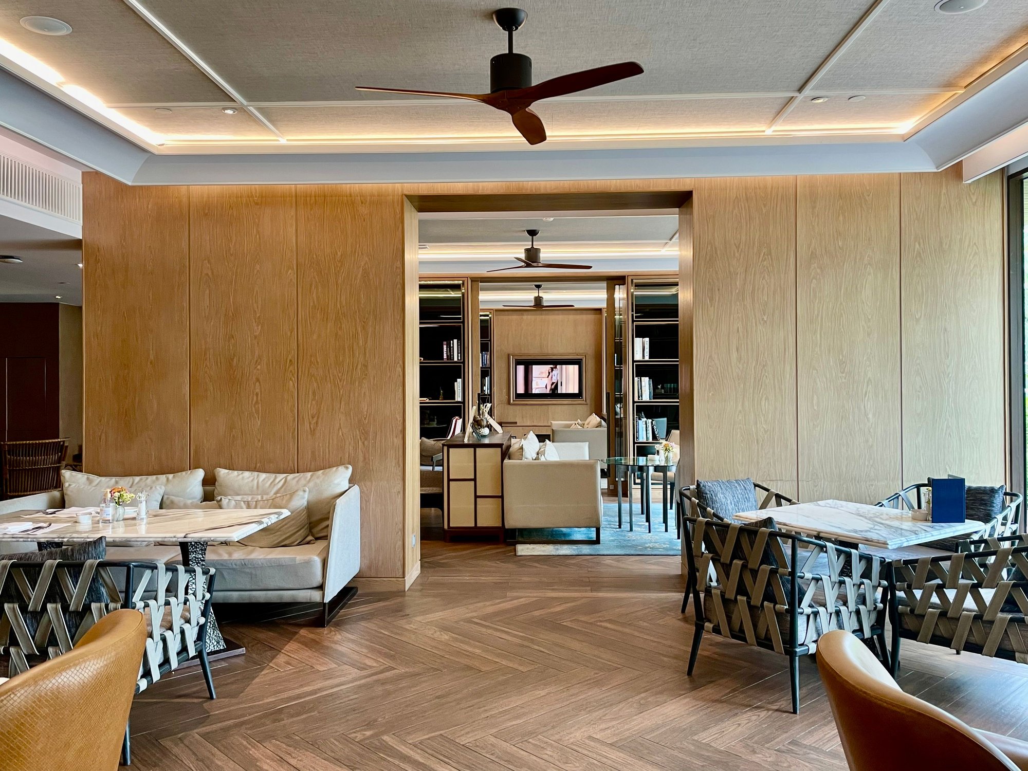 The club lounge has its own terrace with dining tables and deck chairs, and private pool, both with ocean view.