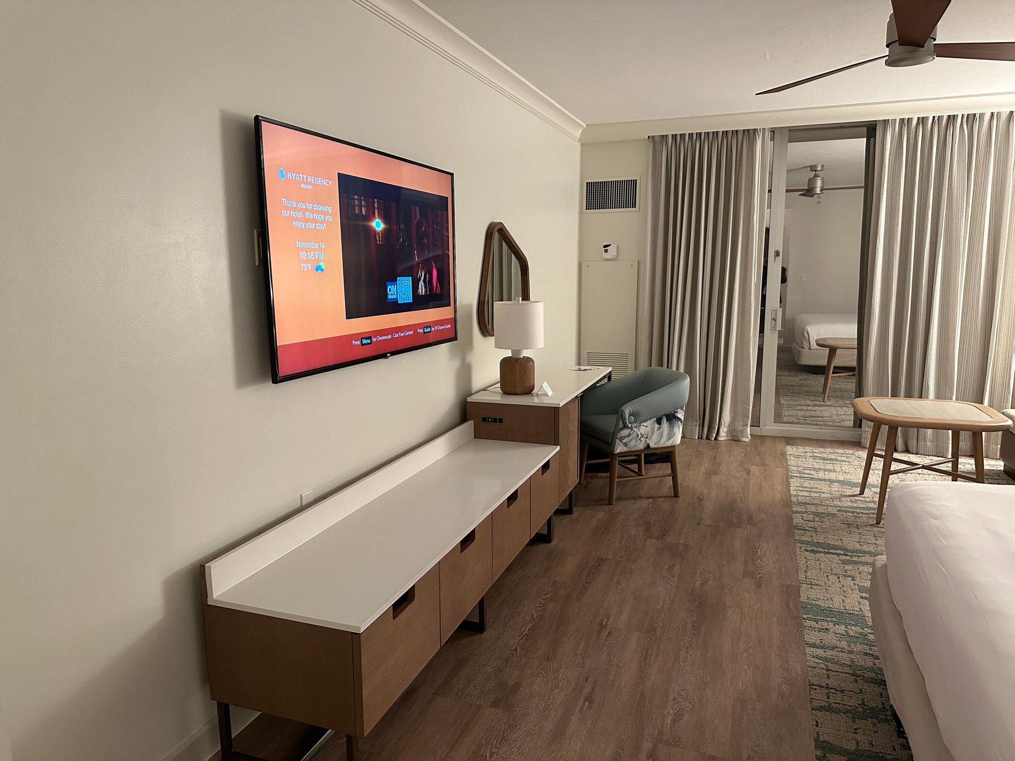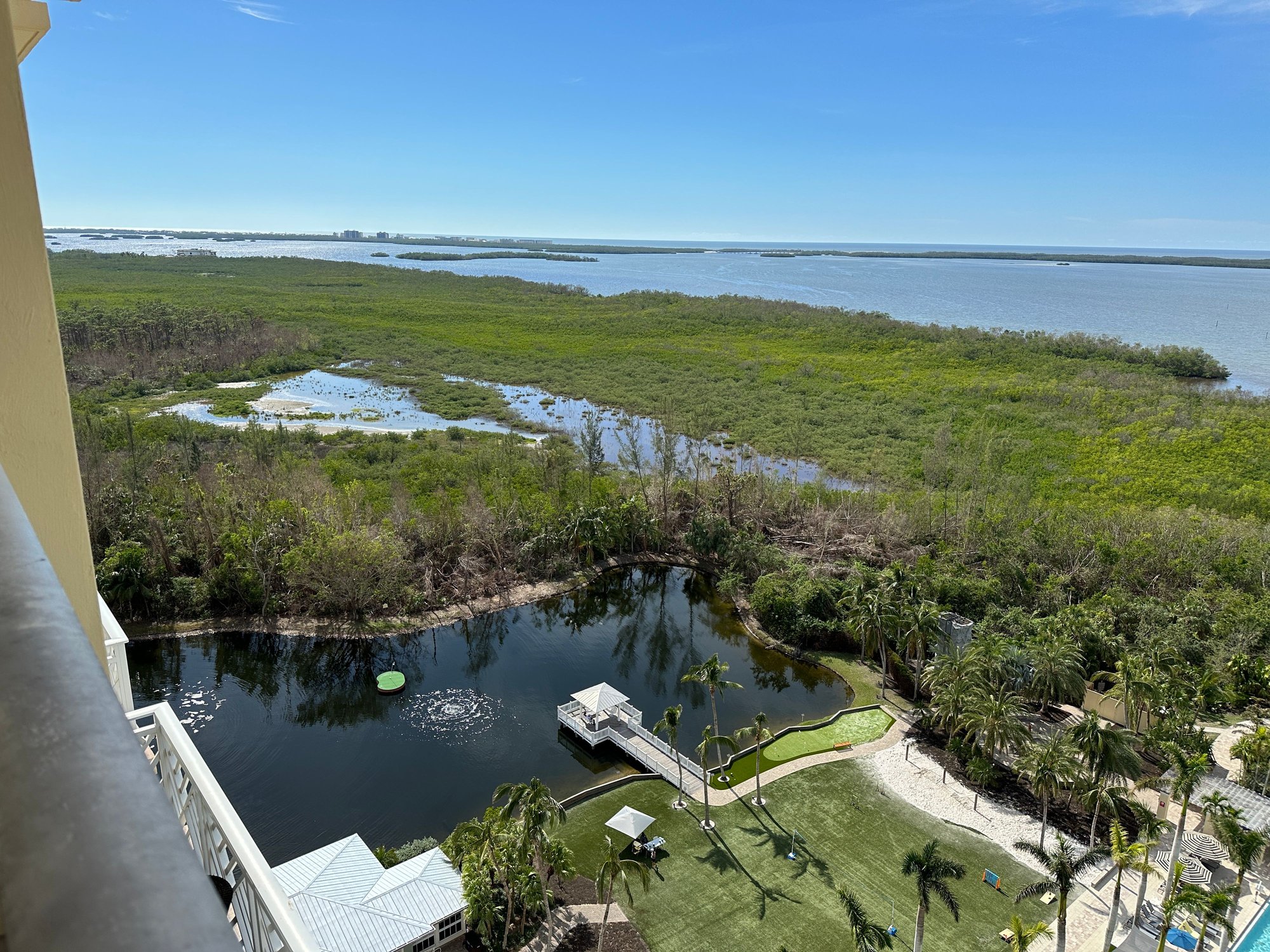 I arrived from RSW airport and it was about a 23 minute Uber ride with no traffic. I arrived late to find a very friendly and helpful check-in agent. She gave me all the details I needed, noted my Globalist status and gave me coupons for breakfast. The hotel was sold out due to the conference I was attending and I assume the conference organizers had the suites booked up but I was given a very nice King Bay View room.