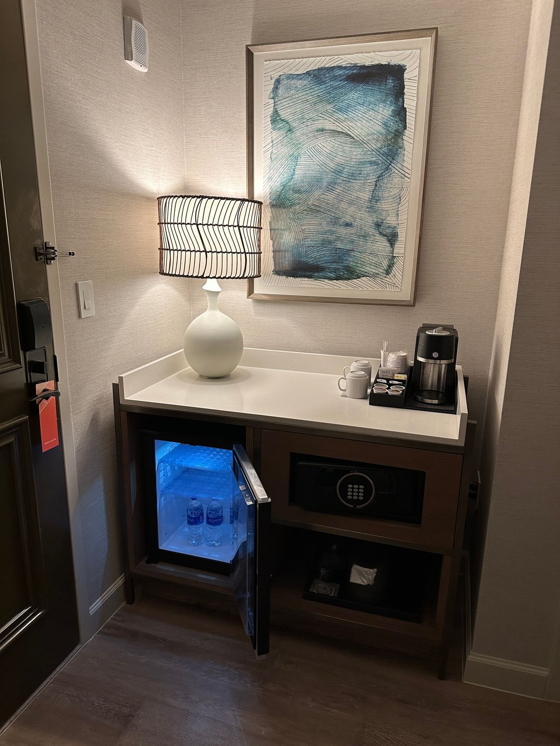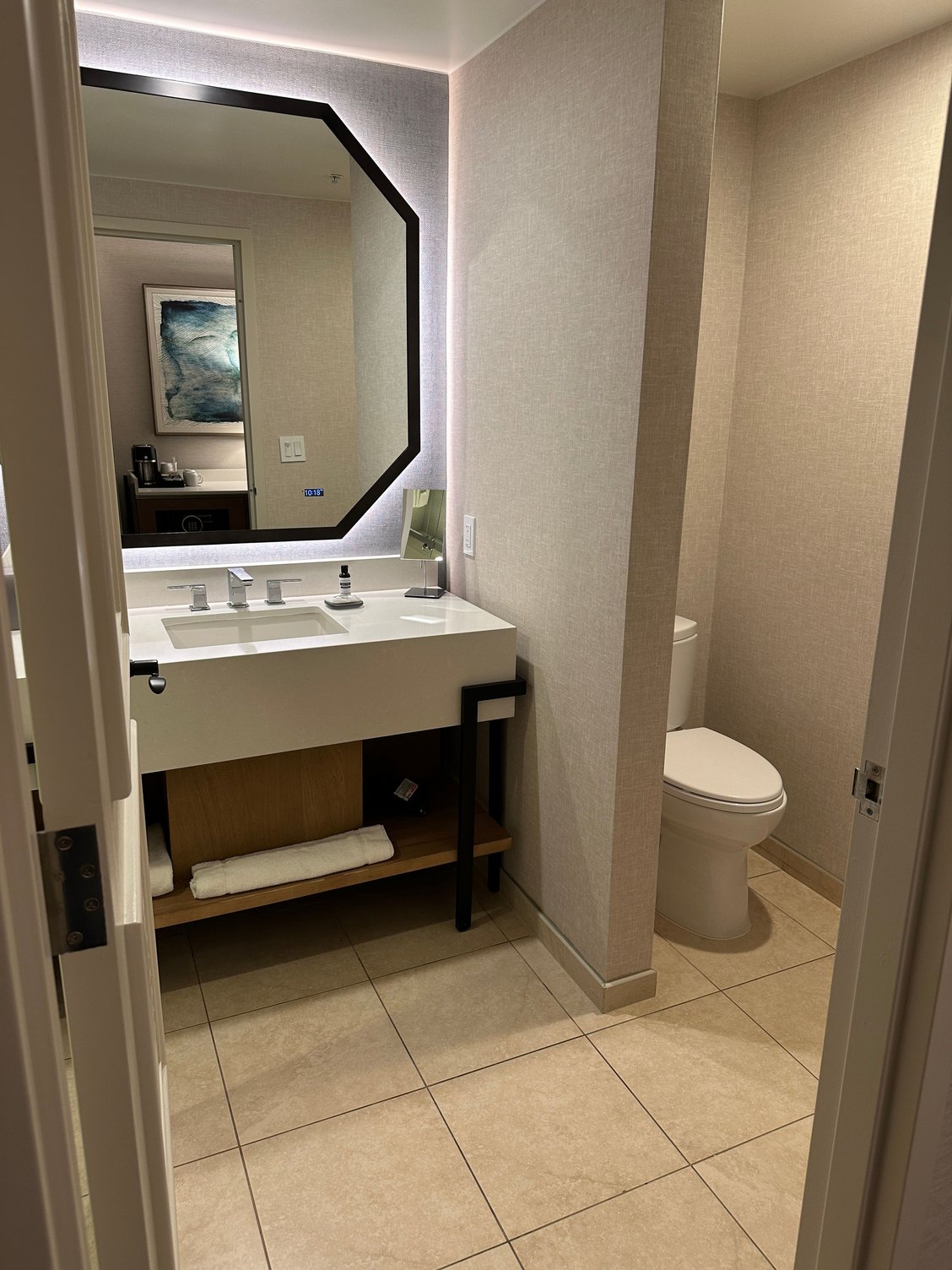 The room was very nice and spacious. It was a high quality and comfortable space. My only issue, and it is small, was the elevator seemed to create a wind tunnel type of noise that echoed in the room. I was across the hall from the elevator and not next too it but still echoed through. That did not bother me but it might bother some of you more sensitive noise folks.