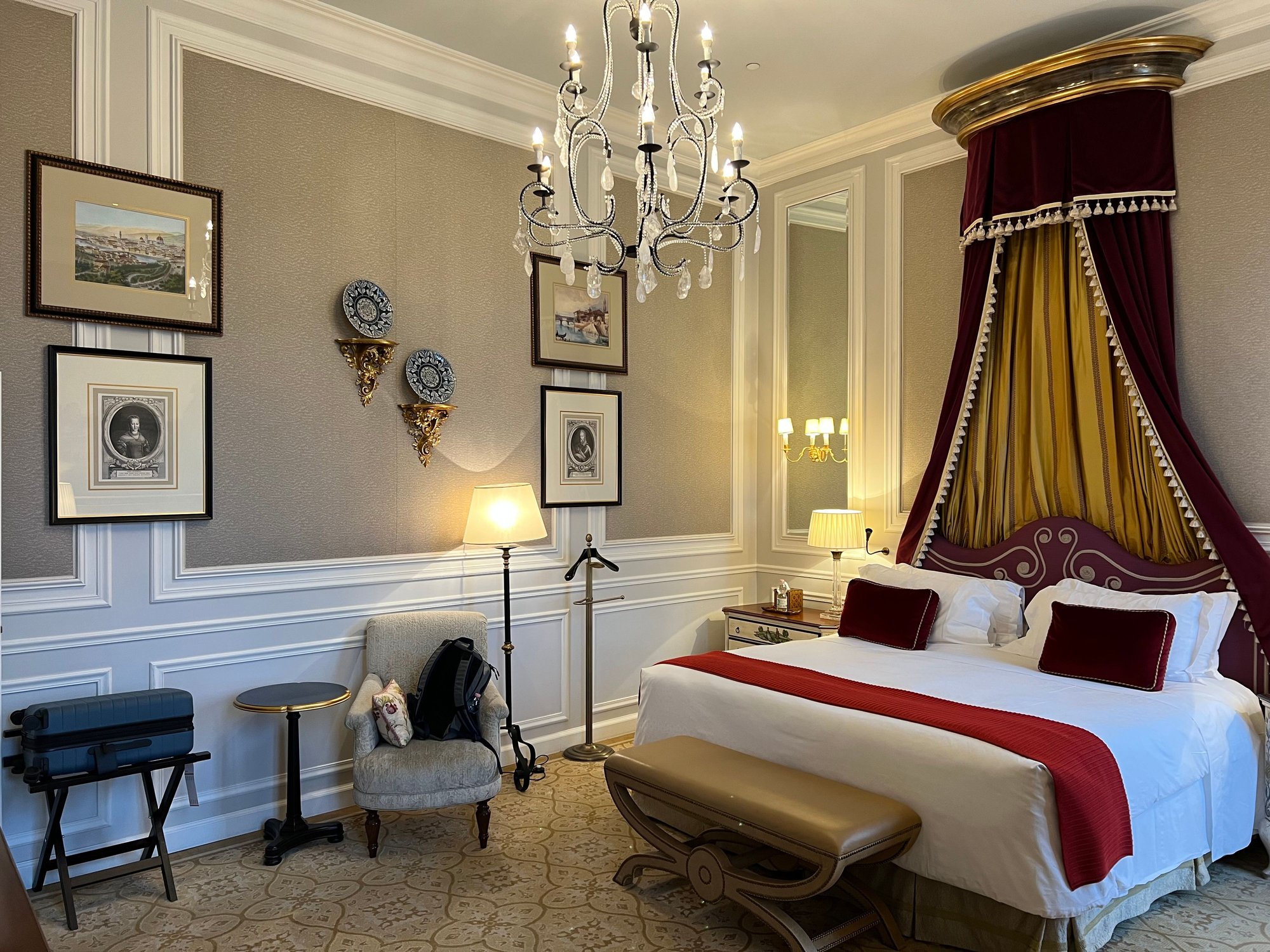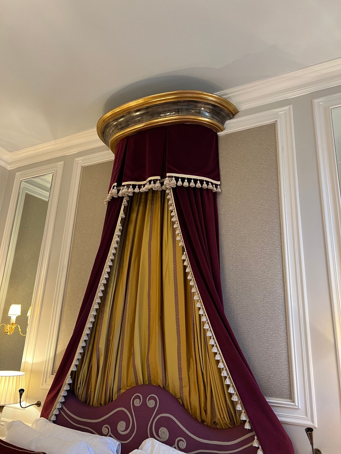 - Room design is exquisite with beautiful detailing and art (love the massive painting of the city over the desk)