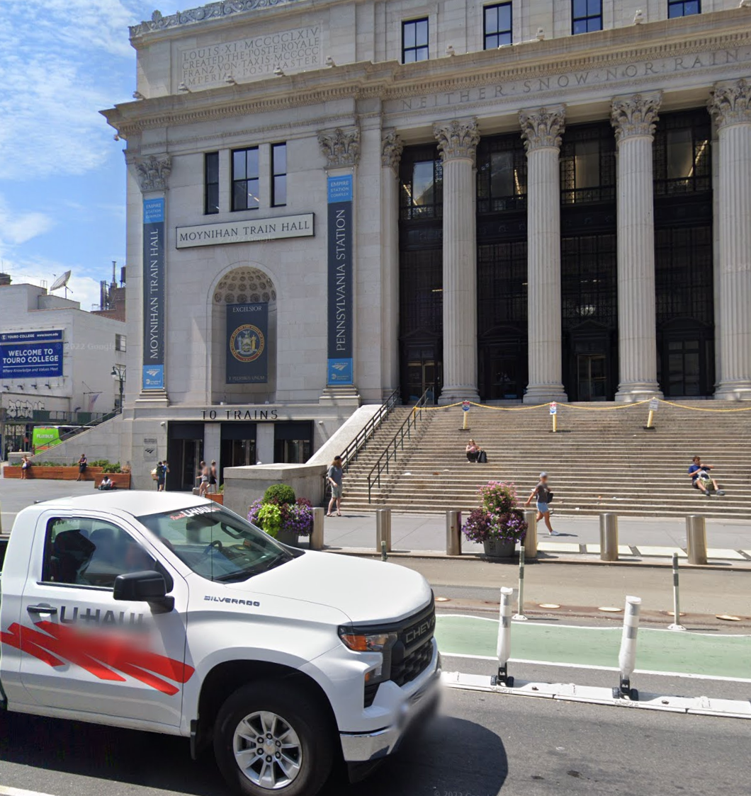 I don't have a great photo, but this grab from Google shows the correct entrance at 31st and 8th that will be closest to the entrance of the lounge.