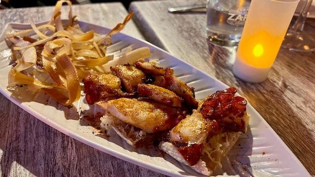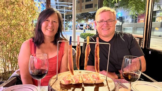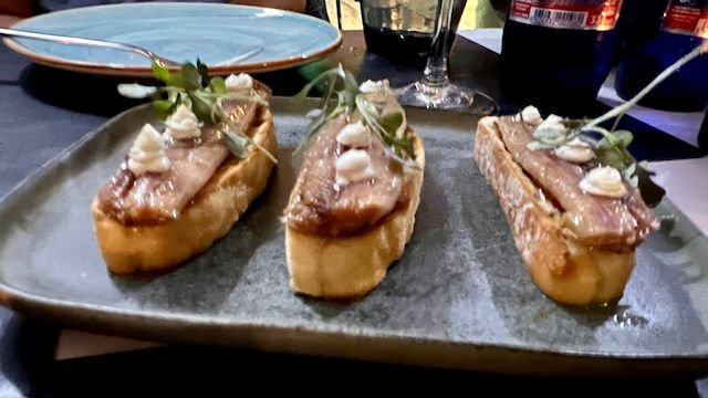 As part of my “Best of Torremolinos” series, we dined at another one of my favorite places, Zabor Fetén. We started with their hanging anchovy dish and then had a squid brioche, octopus toasts, and a pluma ibérico. The Colombian couple that owns the place were as warm and friendly as always. Paul and Susan repeated that they were amazed at the quality of restaurants that my little seaside village had. It’s deceiving.