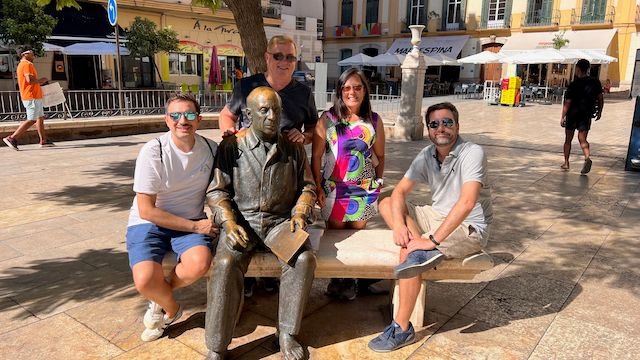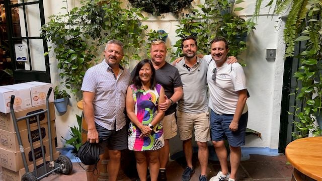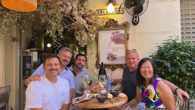 The next day was all about Malaga. I put Paul and Susan on a train to town so they could do a walking tour. I left a bit later and dropped off the rental car back at the airport. We all met up around 2:30 pm at one of my favorite restaurants, Blossom. The staff is always amazing and they had a great high table for us. And the feast began. Jorge had his COVID bubble buddy Luis from Madrid joined so we were five for lunch. Luis and I clicked immediately especially because he was an architect specializing in airports! He has worked all over the world. I didn’t want to be too much of an AVGeek but he loved to talk about his work. He had worked on many airports including Colombia and Egypt!