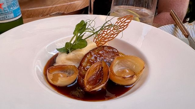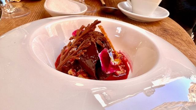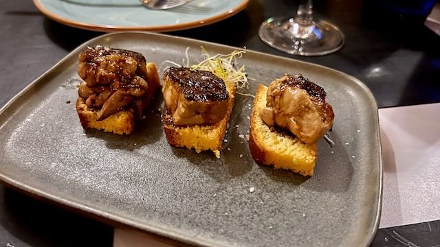 Lunch turned out to be a Spanish omakase and they just brought out food until we were full. We enjoyed a ceviche de lubina, a pork loin, and a fois gras. Is it bad to eat fois gras daily? The meal ended with an amazing chocolate dessert and we all were super happy. It was a lovely moment all together with amazing food.