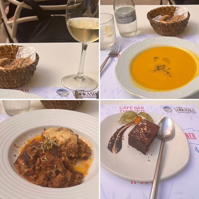 For lunch I headed back to the Museo Carmen Thyssen because their cafe had a great menu of the day with a squash soup, moussaka, and a chocolate cake. With bread and a glass of wine this was a museum bargain at €10.