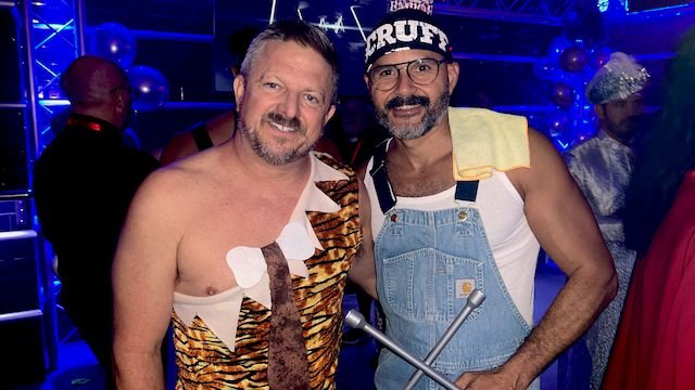Unfortunately, Jorge, Jack, and I were in the Algarve during this summer’s White Party. Luckily I was back in town for their big September costume party and I couldn’t miss it even if Paul and Susan were visiting. Jorge was in charge of the costumes. I always love a topical costume. Queen Elizabeth had just died and I found some big ears on Amazon.es and t-shirts saying “God save the king!” We would all go as King Charles III. Unfortunately our order was delayed and we had to go a different direction at the last minute. Jorge ended up getting me a Flintstones costume. It was silly and cute. Jorge was something from the 80s and Luis was a sailor.